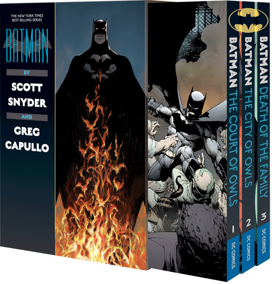 And if you are worried that your Batman book/mask set won’t make it in time for the Batman Day celebration in late September, you are in luck with the newly collected Batman box set with the first three volumes of Scott Snyder and Greg Capullo’s epic run with the caped crusader! The new, slipcased set will include BATMAN VOL. 1: THE COURT OF OWLS, BATMAN VOL. 2: CITY OF OWLS and BATMAN VOL. 3: DEATH OF THE FAMILY Trade Paperbacks. Enjoy the thrilling stories that introduced the deadly Court of Owls and took the Joker to new, horrifying levels of insanity!