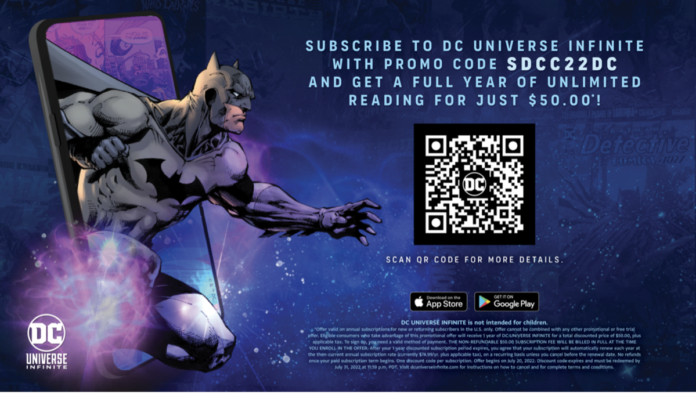 That premium offer is now open to everyone and is available to redeem until August 10. To activate a full year of unlimited reading on DC UNIVERSE INFINITE for just $50, enter promo code SDCC22QR while subscribing.