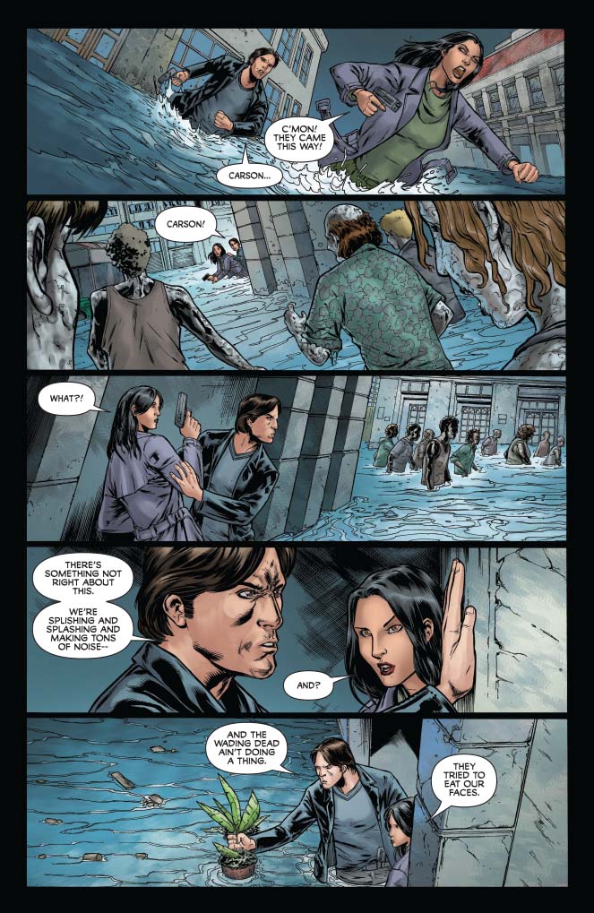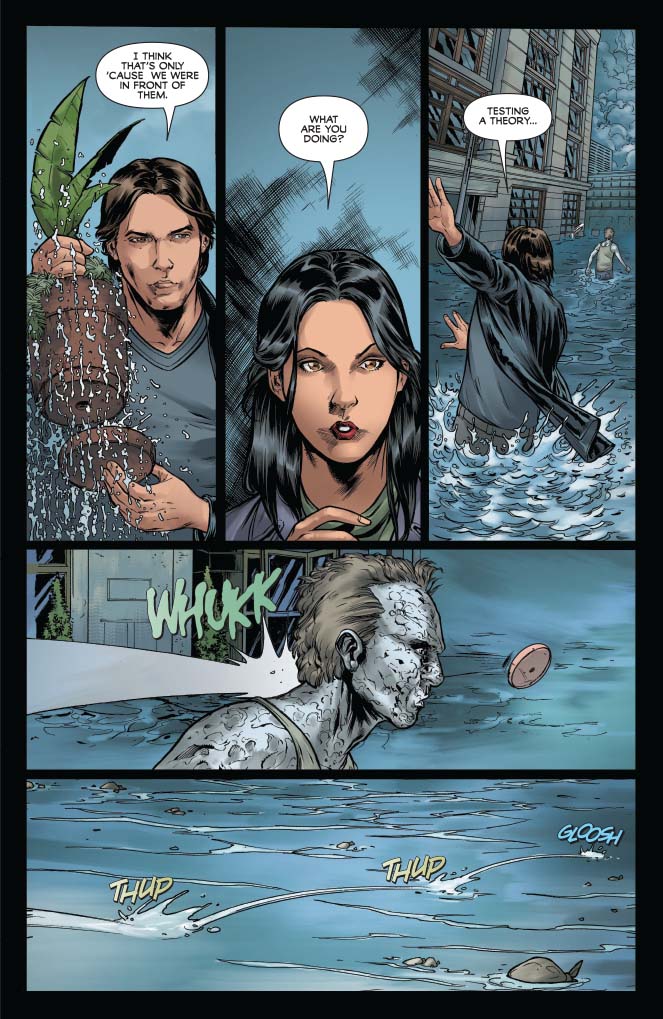 The gale force winds and floodwaters have devastated The Big Easy… but the undead hordes unleashed by Victor Helios will tear the city down at its foundations! Meanwhile, Frankenstein’s first creation Deucalion has his monstrous fingers at Erika’s throat, while Carson and Michael attempt to figure out what drives the zombie army to their fearsome purpose!