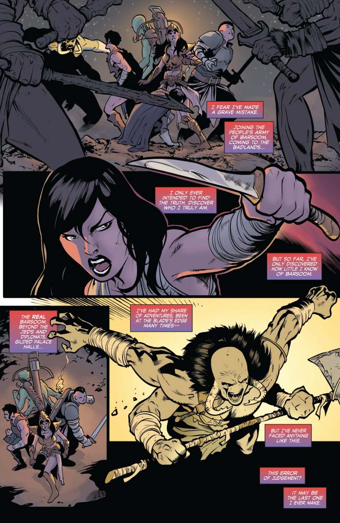 Having taken command of an elite unit in the People’s Army of Barsoom, Dejah ventures into the badlands to search for secrets of her past. But when her unit is captured by powerful enemies, she must truly learn what it means to be a leader or suffer the consequences! An all-new chapter in the life of Dejah Thoris continues from the creative team of Frank J. Barbiere and Francesco Manna.