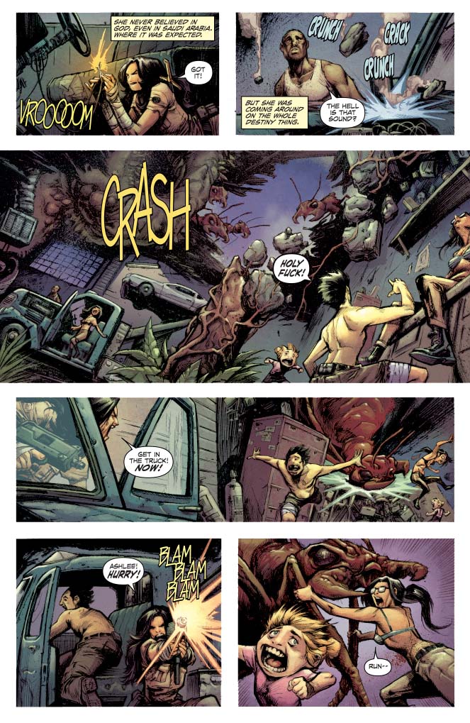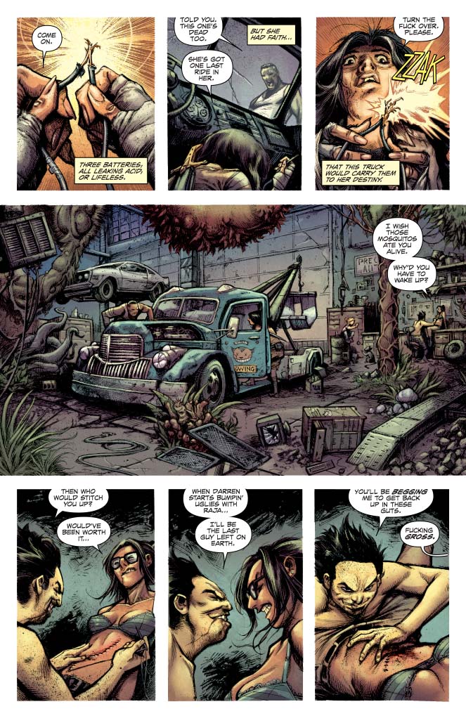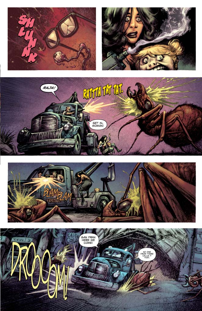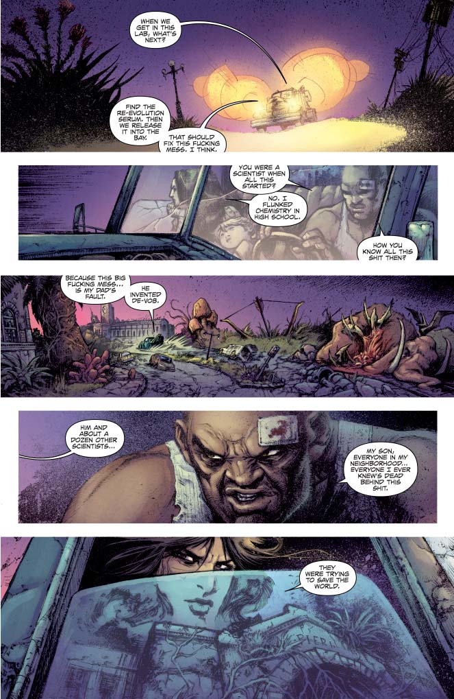 Raja and the rebel Marines have set out on a journey across the devolved wasteland to try and save humanity,only some of humanity like things just as they are. Check out the thrilling new series that Rick Remender (Black Science, Deadly Class) describes as “a heavy dose of high-octane action, character drama, a world of strange reverse mutations, and social commentary – as we follow the last tribe of humans inoculated from the devolution agent as they set out on a desperate journey to try to find a way to re-evolve life on Earth.”