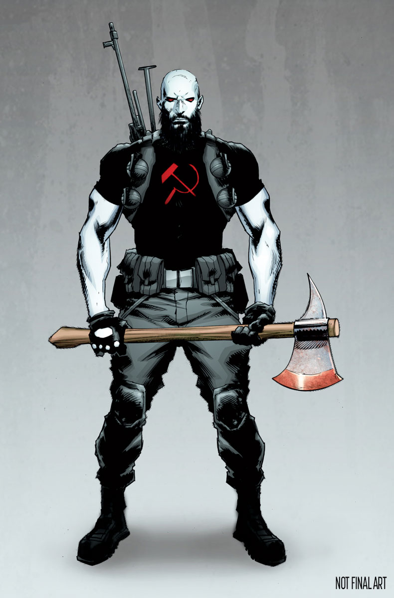 He’s put down protests, led the purge of political undesirables, and executed dozens of traitors to the Soviet super-state. His name is KOMANDAR BLOODSHOT…and his existence is a hushed whisper among the terrified populace of the 21st century’s global Soviet Union. But just who is this unrelenting enforcer of state superiority… and what is the shocking truth about his power, his allegiances, and his true identity?