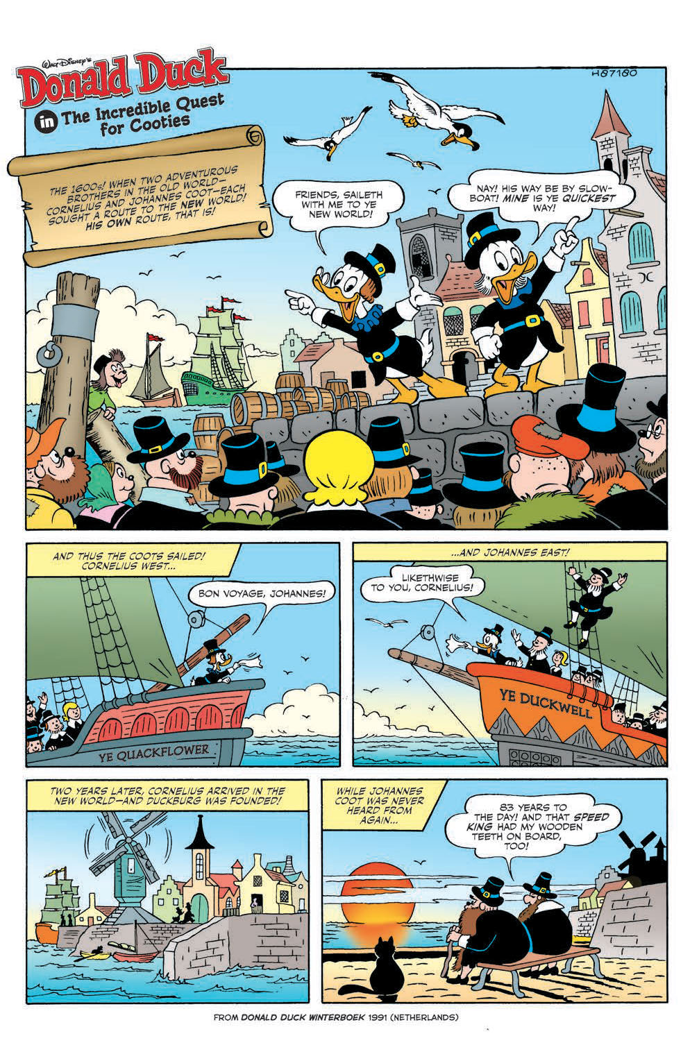 “The Incredible Quest for Cooties!” When Donald finds a lost world of Thanksgiving-style Pilgrims, he does the sensible thing—and gets crowned king! What could possibly go wrong?