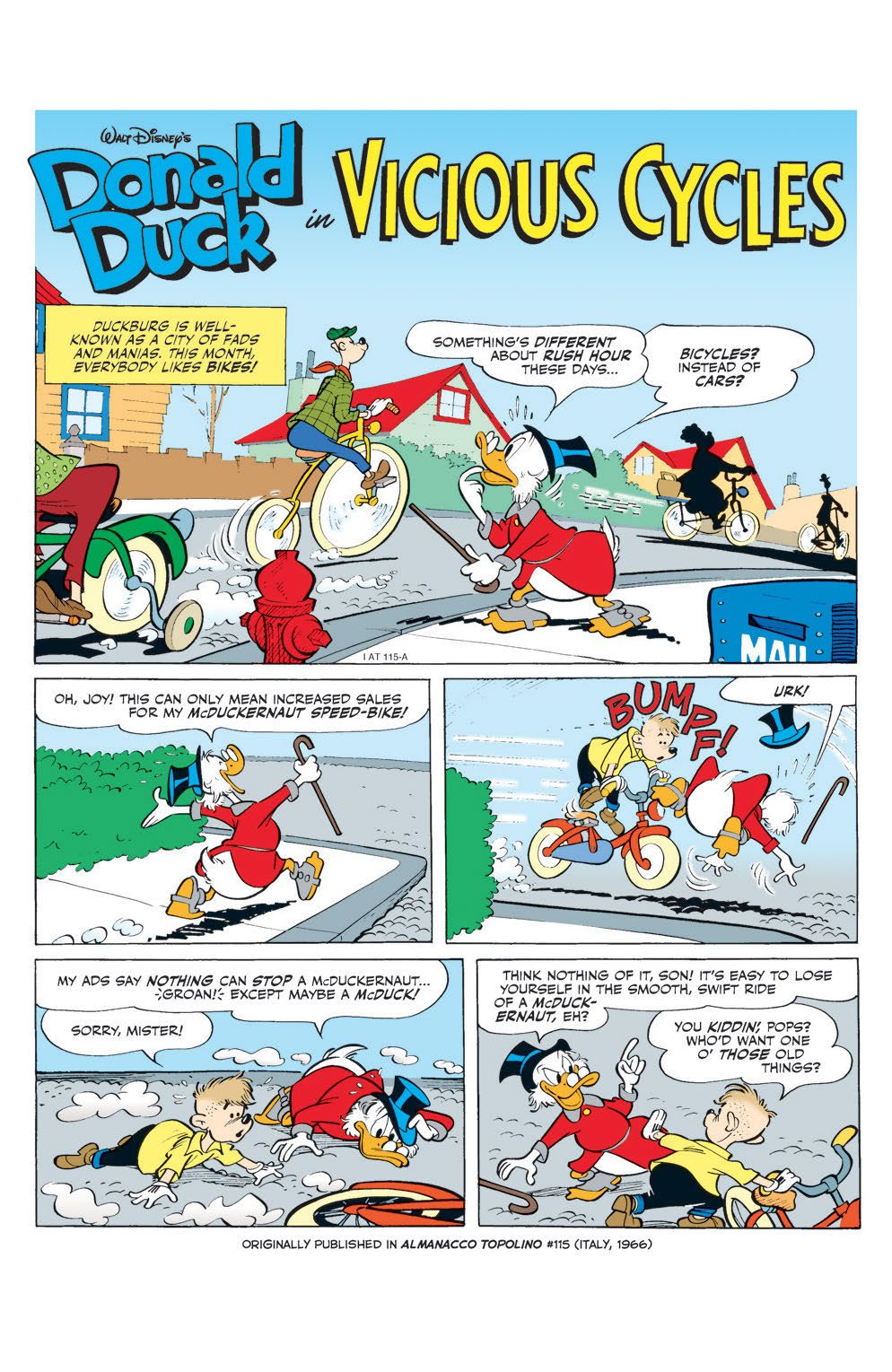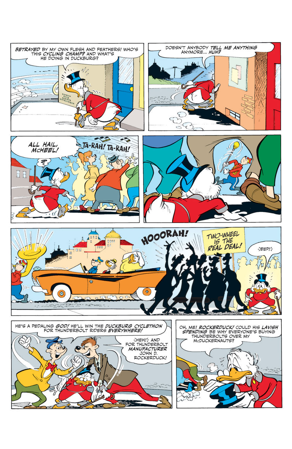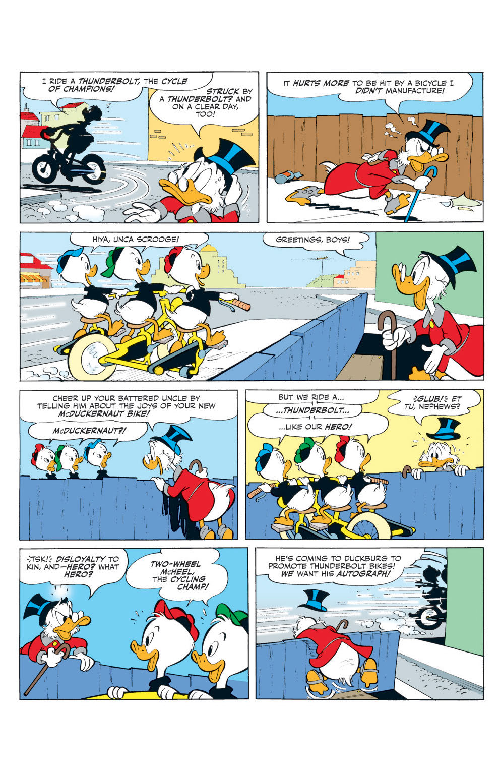 “Vicious Cycles!” Scrooge’s latest money-making scheme requires Donald to win a pro bicycle race—and beat brutal biking champ Two-Wheel McHeel!