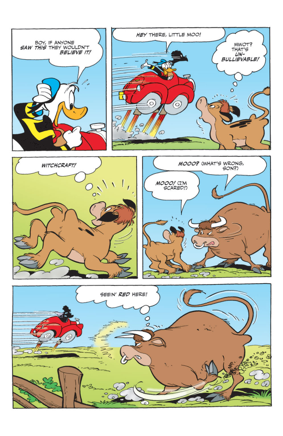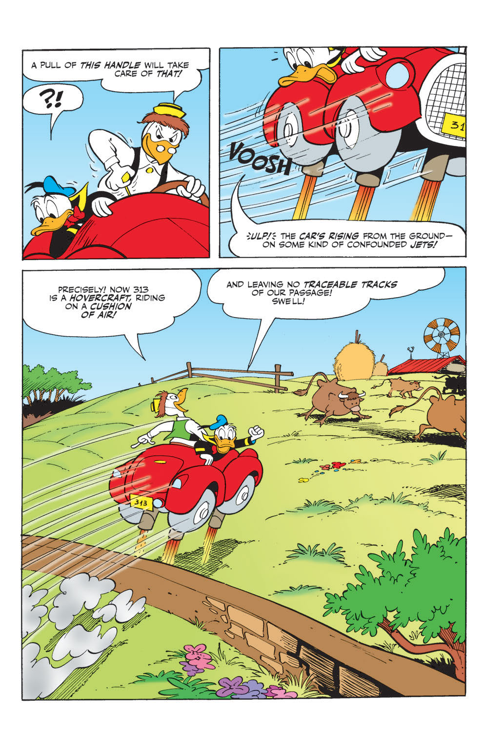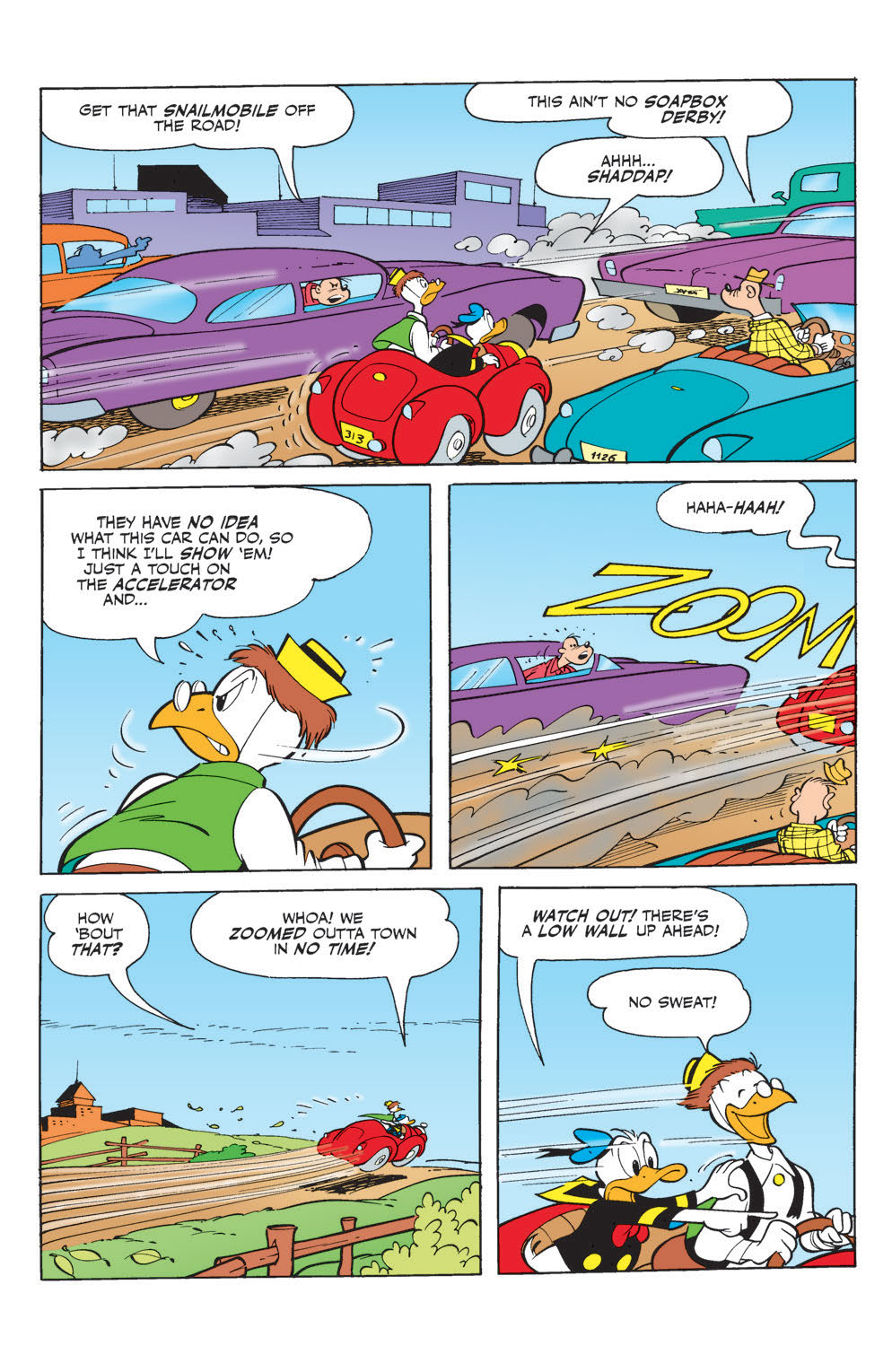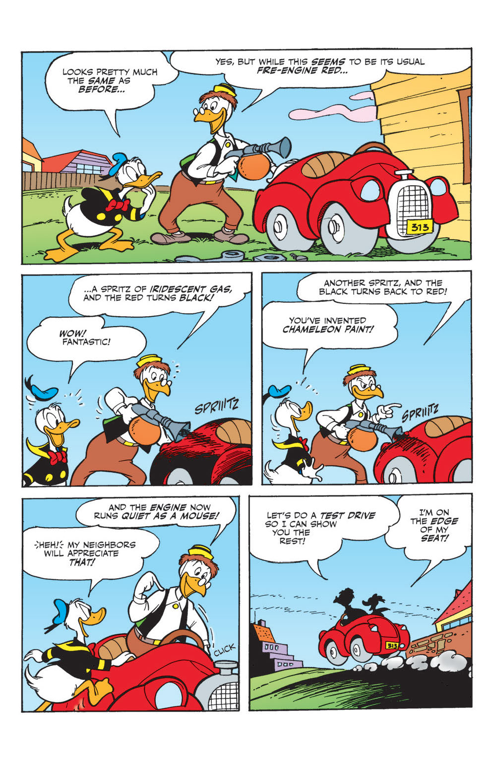 “Revenge of the Duck Avenger,” Part 1 of 2! Scrooge and Gladstone drive Donald back into his role as a super-anti-hero—with Gyro’s memory-wiping chocolate drops at his command… uh-oh!