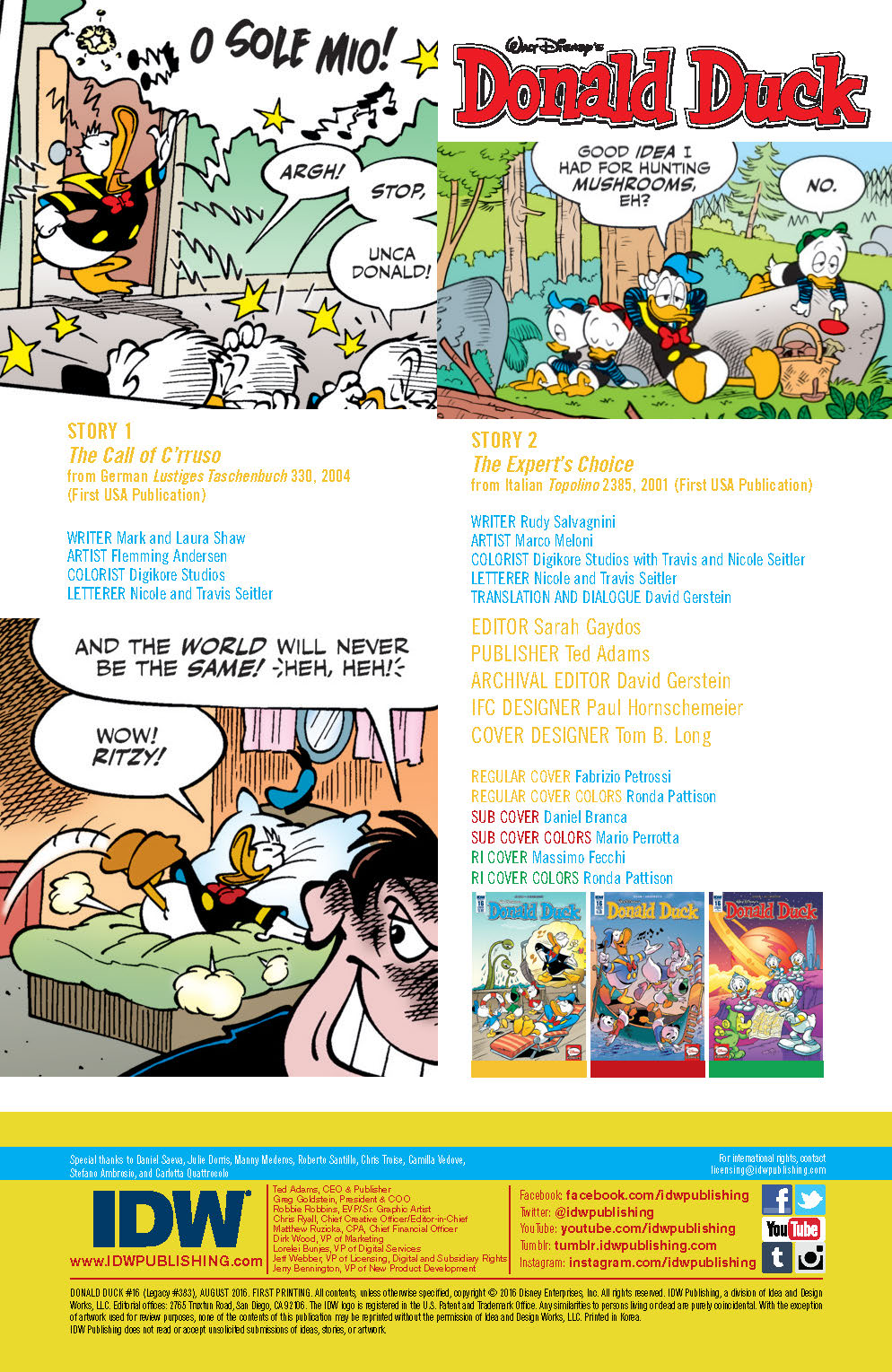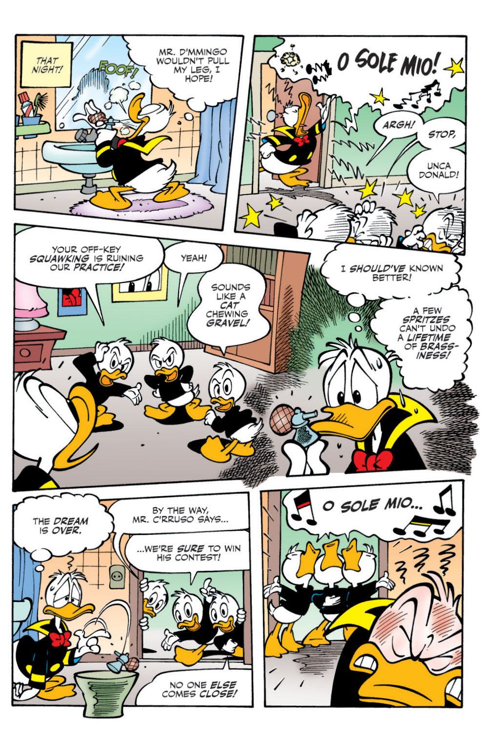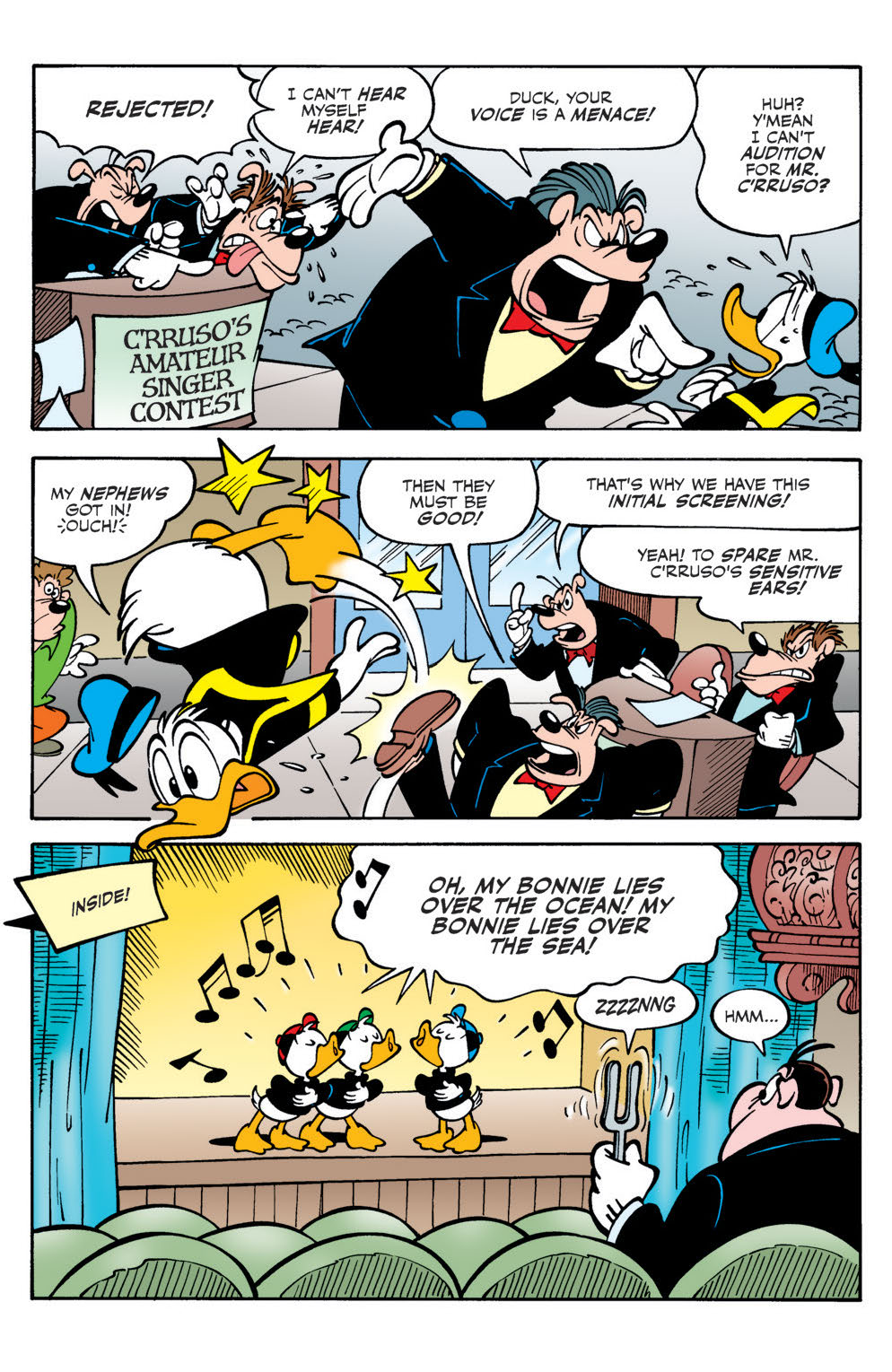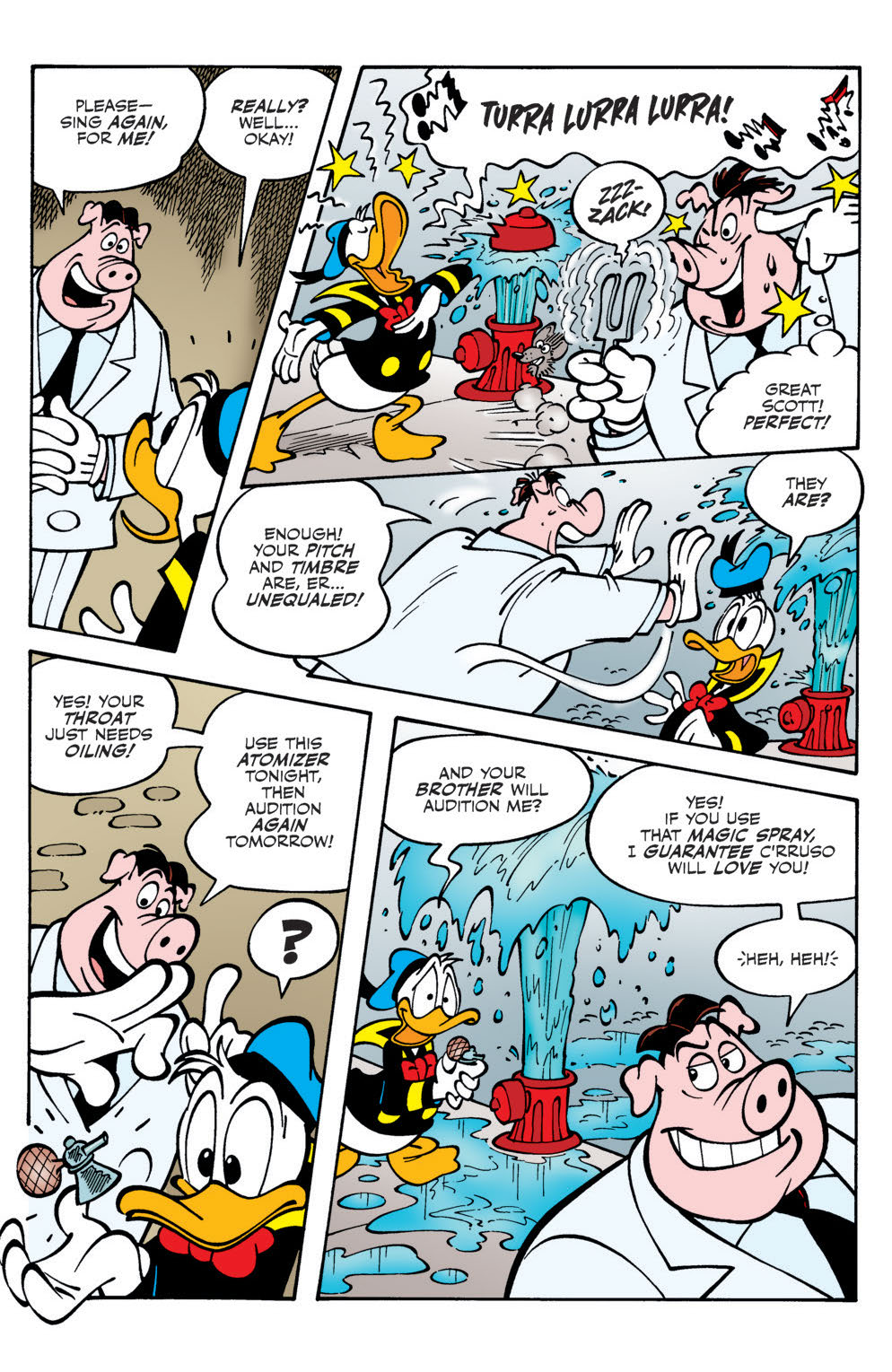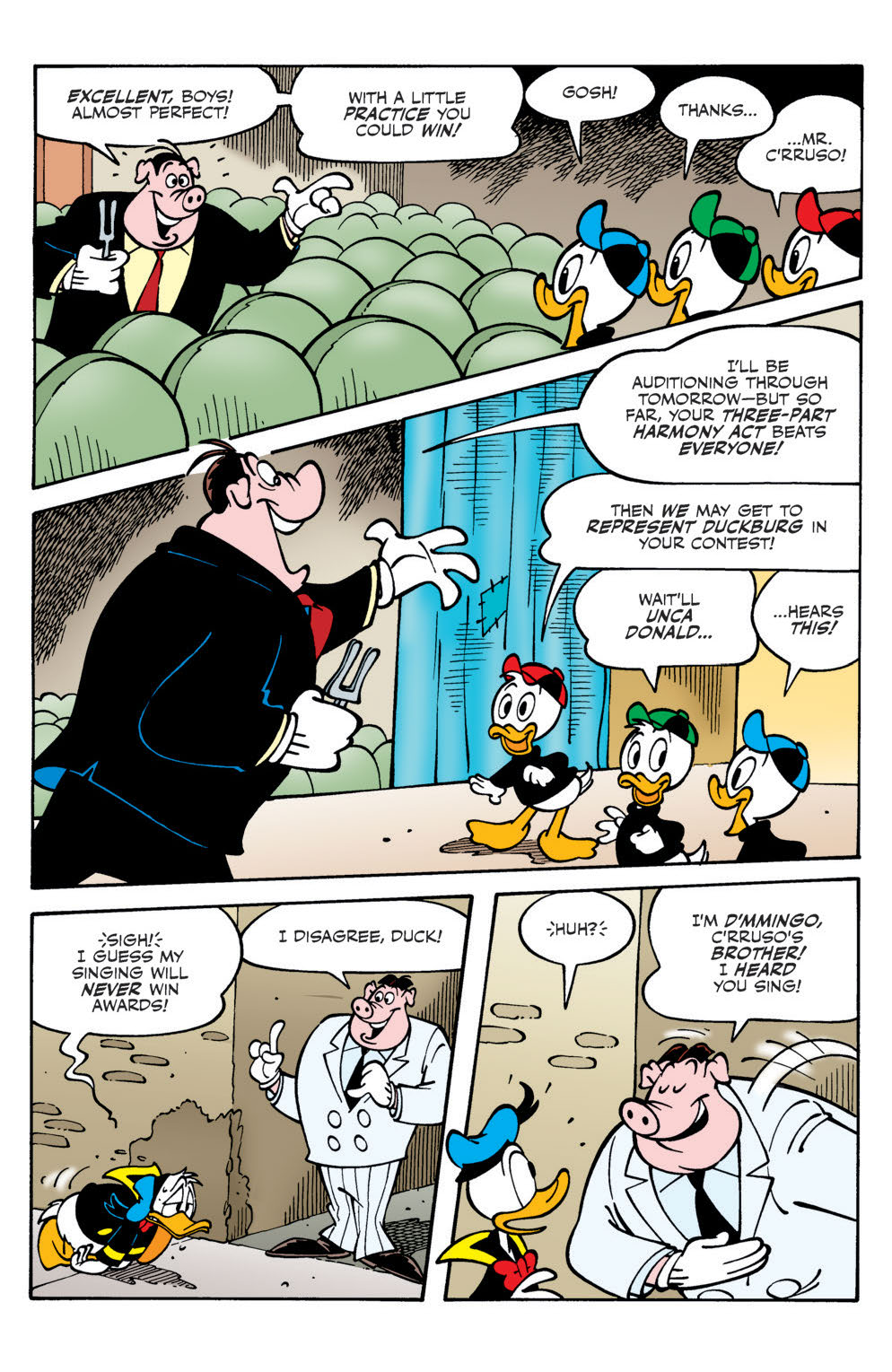 “The Call of C’rruso!” In the city of Sp’too, deep under the sea, a mythical monster-god lies sleeping… till Donald’s awful singing voice wakes him up! Can Duckburg—and the world—be saved?