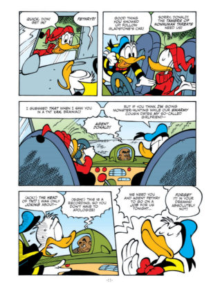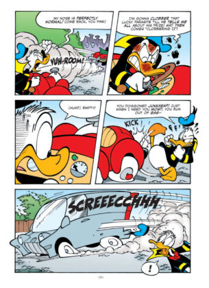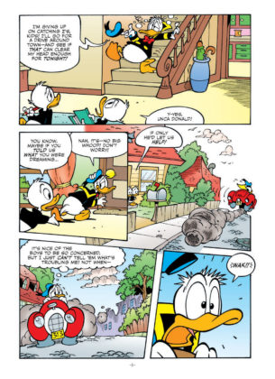 “Wak! Screech!” IDW’s Donald Duck #13–18 come together in a collectors’ hardback so amazing Donald can’t believe it himself–but he’s always a skeptic! The epic adventure “The Big Sneeze,” two outrageous cryptic hunts with the Tamers of Nonhuman Threats–even Donald’s second-ever star turn as Duck Avenger are all here. And wait till you see who lies dreaming in the city of Sp’too, deep under the sea. With stories co-starring Uncle Scrooge, Gladstone, and Fethry, and extras for true Disney Comics aficionados, this Donald omnibus provides hours of history and thrills.