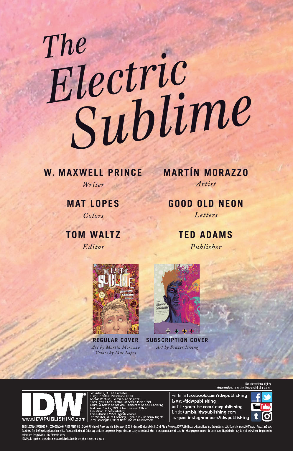 “Art is anything you can get away with… destroy it all.” Welcome to THE ELECTRIC SUBLIME—where art history, madness, and expression meet in a Pollock-splatter of thrilling crime adventure! When a mysterious change in the composition of a famous painting begins poisoning the minds of its spectators, Margot Breslin—director of the Bureau of Artistic Integrity—must pull famed “art detective” Arthur Brut out of a mental institution and back into the insanity that sent him there in the first place. Featuring a treasure trove of classical works, under-the-radar art, and a seven-foot talking mannequin, this is comics, imitating art, imitating life.