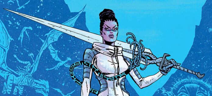 “This story came to me as a vision of a scientist walking through the snow, and she’s carrying a big sword, and even bigger loss in her heart. As I unpacked what makes Van, our leading character, tick, I discovered a world of heartbreak and inequality amidst the chaos of futuristic technology replacing ethics and strange creatures living among what’s become of humanity,” said writer Ryan K Lindsay.