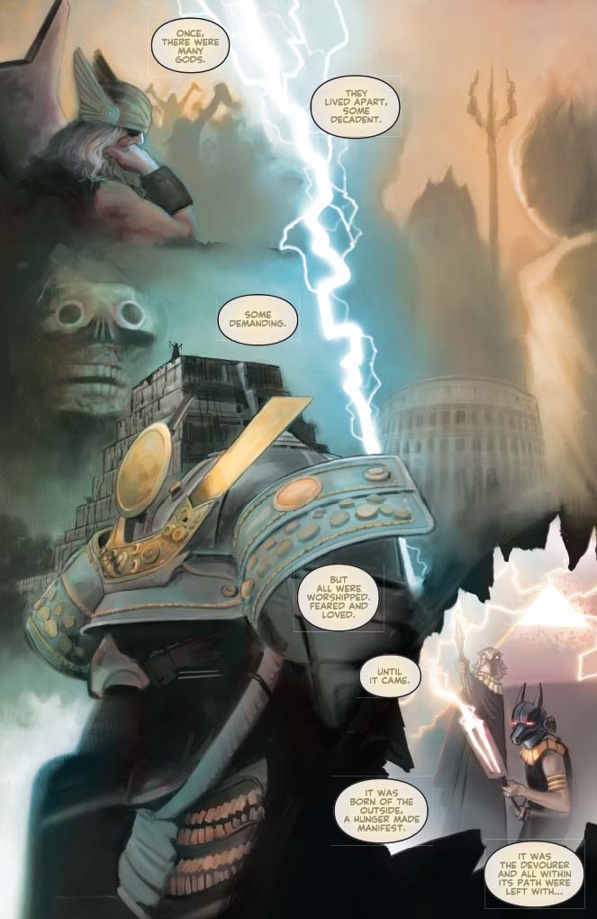 Superstar writer Justin Jordan revels in the mayhem and madness of an Apocalypse on Earth… and beyond! Heaven and Hell unite on Earth as Ernie and his counterpart from Heaven, The Host, try to stop the Godeater from rising. Meanwhile, in our back-up feature: the lead singer of metal band Last Ditch Bitch discovers her link to Mistress Hel… and the Dead Onez go berserk!