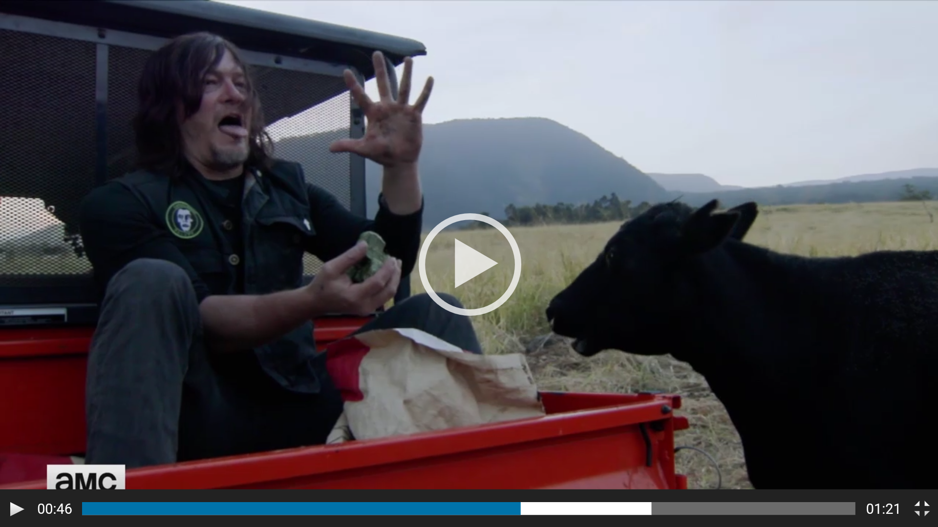 AMC has released an exclusive sneak peek at Monday’s upcoming episode of Ride with Norman Reedus. In the clip Noman tries his hand at herding cows while riding in the back of a truck. Things go smoothly until he starts feeding the cows and gets cow slime all over his hands.