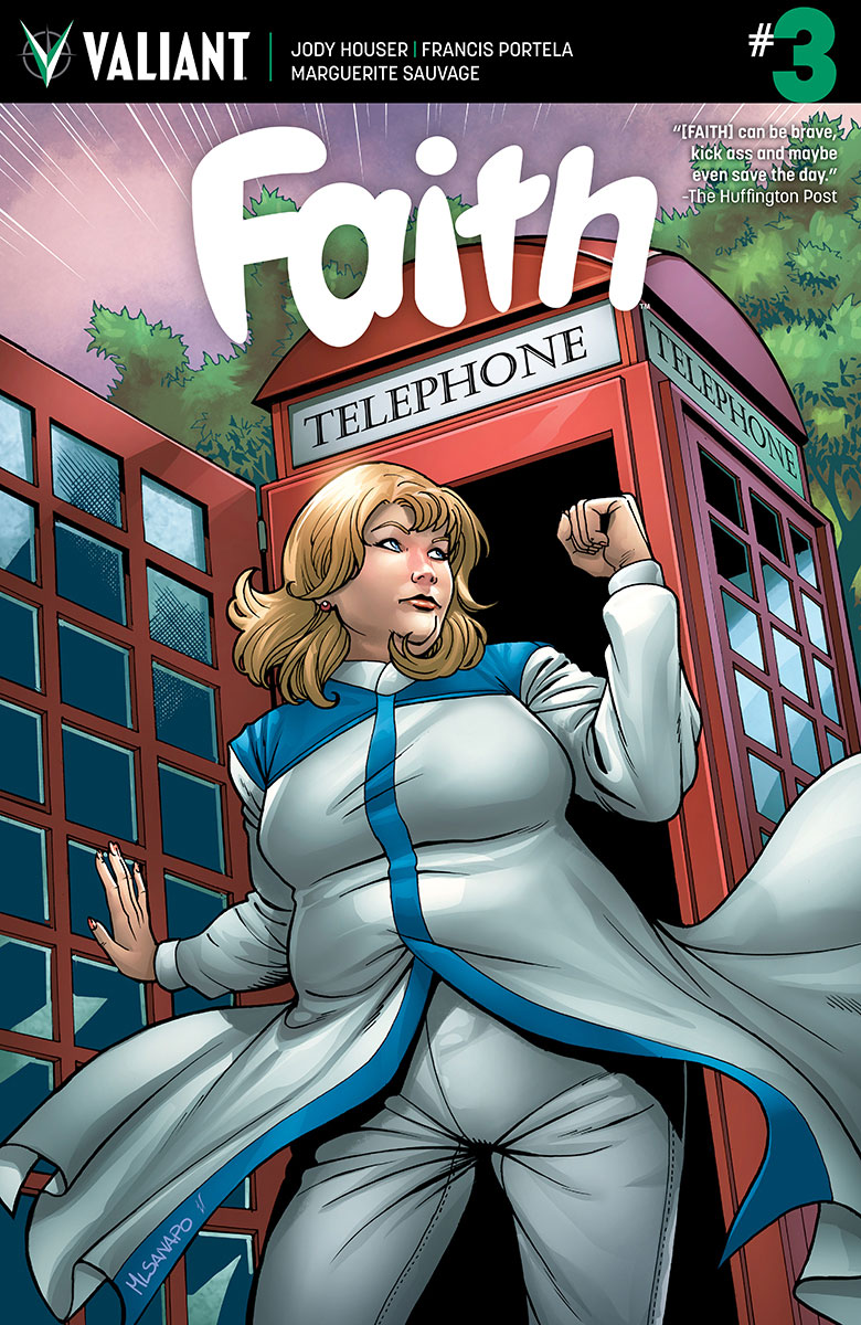 Rising star Jody Houser (Orphan Black) and sensational artists Francis Portela (Green Lantern) and Marguerite Sauvage (DC Comics Bombshells) continue Faith’s landmark solo series debut!