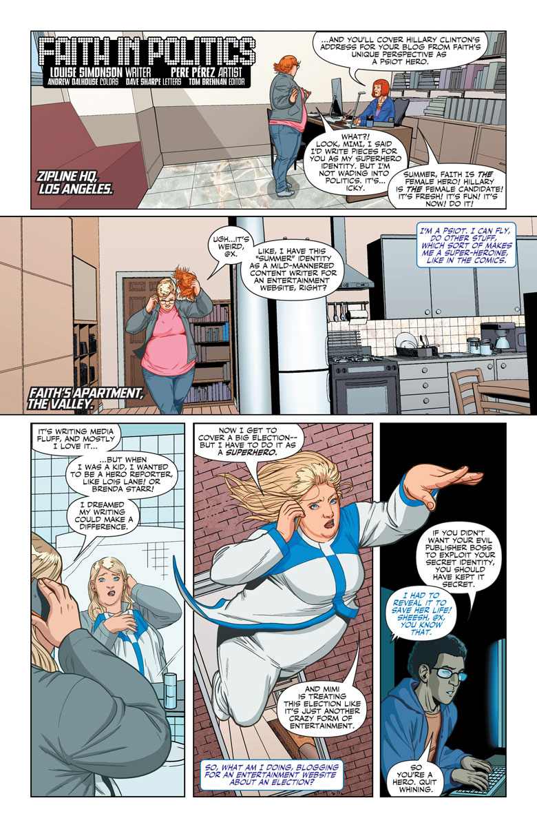 On November 2nd, just days before Election Day 2016, legendary writer Louise Simonson and Harvey Award-nominated artist Pere Pérez present history in the making with a presidential milestone like no other! Faith Herbert, star of the highest selling independent superhero debut of 2016, is a shining beacon of optimism in a challenging world. Her day job as a blogger and journalist is about to bring Faith face to face with Democratic Presidential nominee Hillary Clinton…but its her daring alter ego as Los Angeles’ leading superhero that will have to save the day when a new threat emerges to imperil a pivotal moment that has all of America watching!
