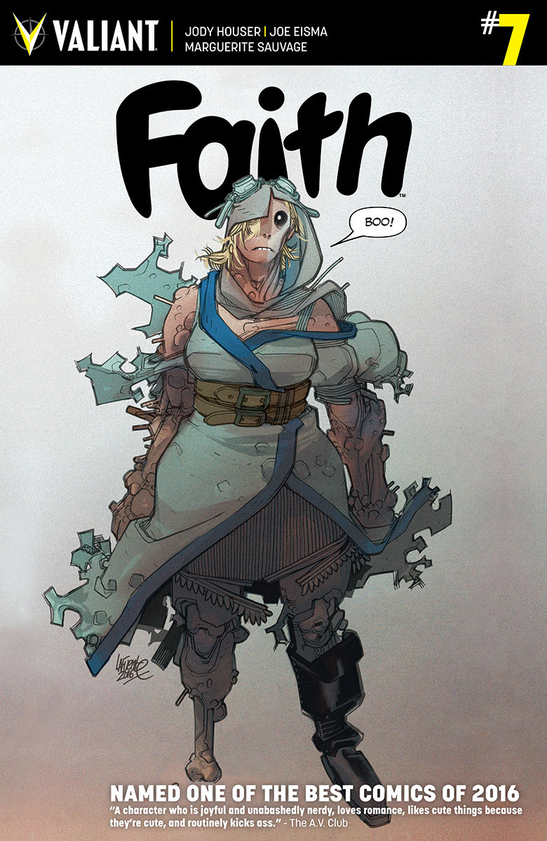 Jump on board the best-selling independent superhero series of 2016 right here as rising star Jody Houser (Mother Panic) and acclaimed artists Joe Eisma (Archie) and Marguerite Sauvage (DC Comics Bombshells) push Faith into the crosshairs of a frightful new foe!