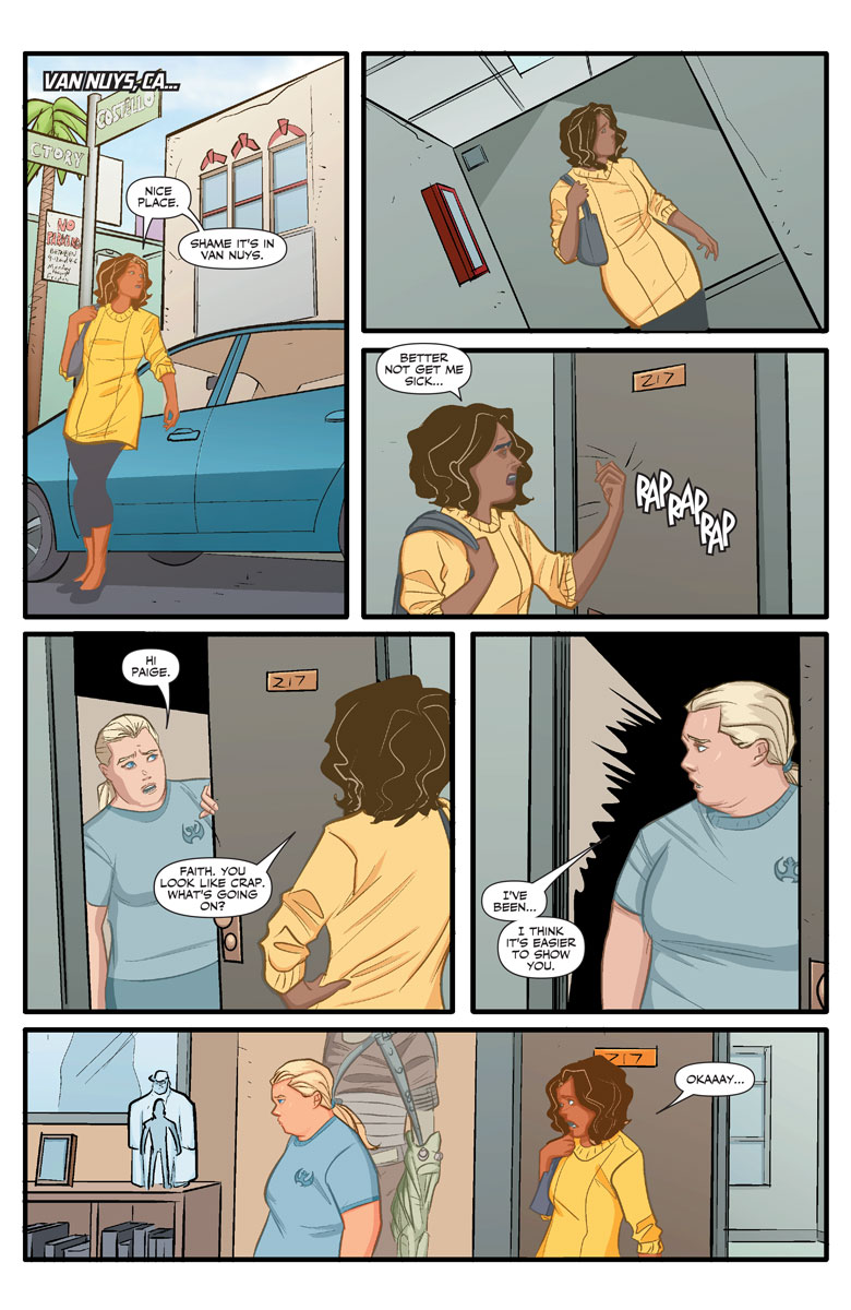 Ready your spoiler alerts because rising star rising star Jody Houser (Mother Panic) and acclaimed artists Meghan Hetrick (Red Thorn) and Marguerite Sauvage (DC Comics Bombshells) are going to pull the curtain on Faith’s most shocking adventure yet with the surprise moment of the year!