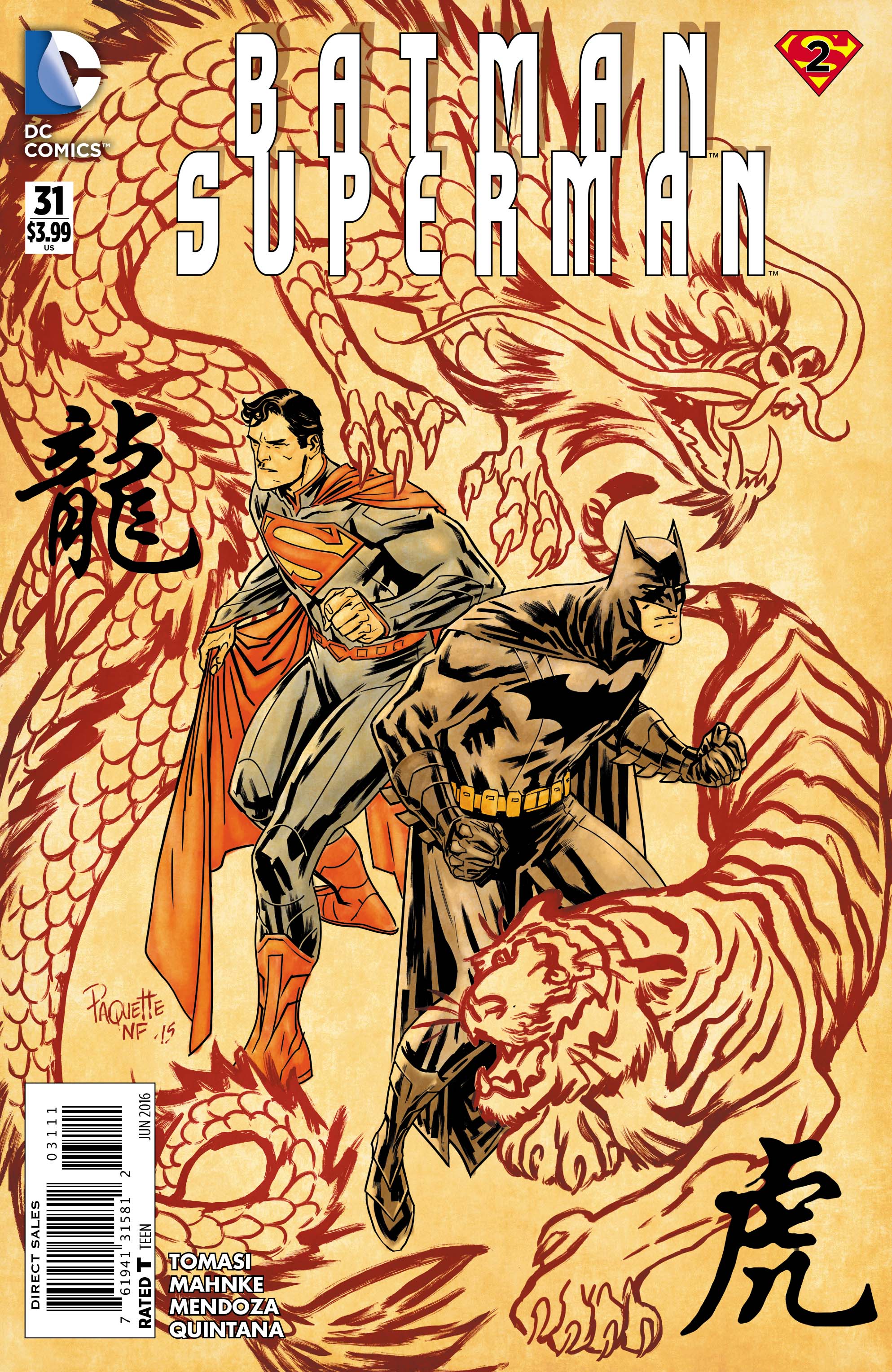 Part Two continues in BATMAN/SUPERMAN #31’s “Dark Discovery,” available now. Superman invades Gotham City to inform Batman that he’s dying—and to enlist the help of the World’s Greatest Detective in locating his cousin Supergirl, who’s mysteriously gone missing. In the process, the World’s Finest heroes must defeat the monsters of the Chinese Zodiac.