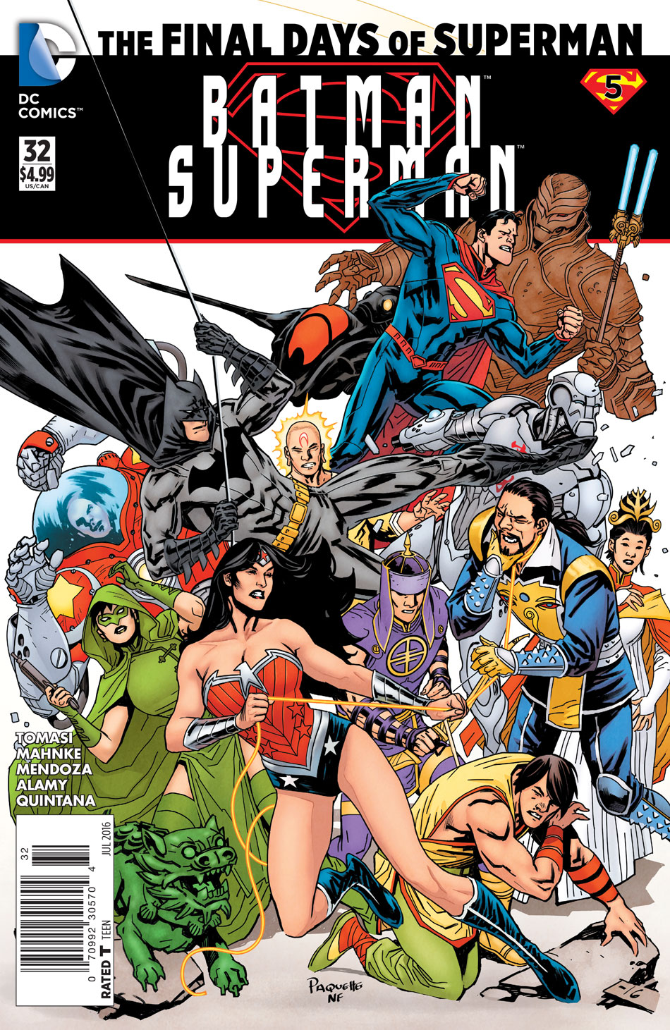 The devastating effects of Apokolips’ fire pits in JUSTICE LEAGUE: DARKSEID WAR, the A.R.G.U.S. Kryptonite chamber from “Savage Dawn” in SUPERMAN, and his battle with the would-be god Rao in JUSTICE LEAGUE OF AMERICA all combine in a perfect storm of death for the Man of Steel. Determined to protect humanity, despite his impending death, Superman embarks on a quest to seek heroes from across the DC Universe to continue his role as humanity’s protector.