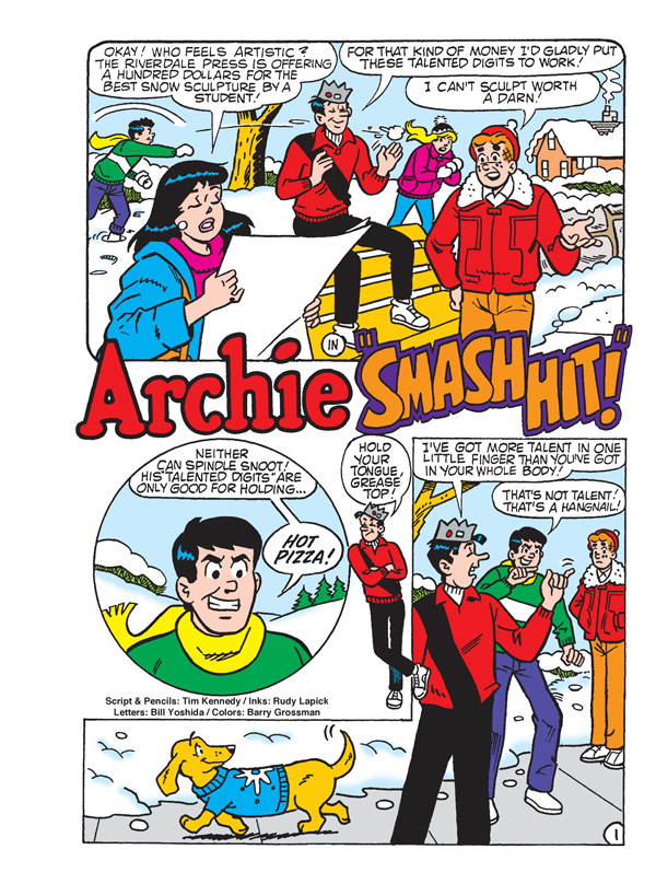 It’s School Picture Day at Riverdale High and Jughead, thanks to his mom’s relentless efforts, looks like a model student. But that doesn’t mean he’s going to stay that way! Mrs. Jones enlists Archie’s help to keep Jughead neat and clean for his picture. Archie takes on the challenge and promises to oversee Jughead the entire day until his picture is taken, but the mission proves to be far more difficult than Archie expected! Can Jughead “Keep It Clean”? Find out in the entertaining lead story to this Comics Annual!