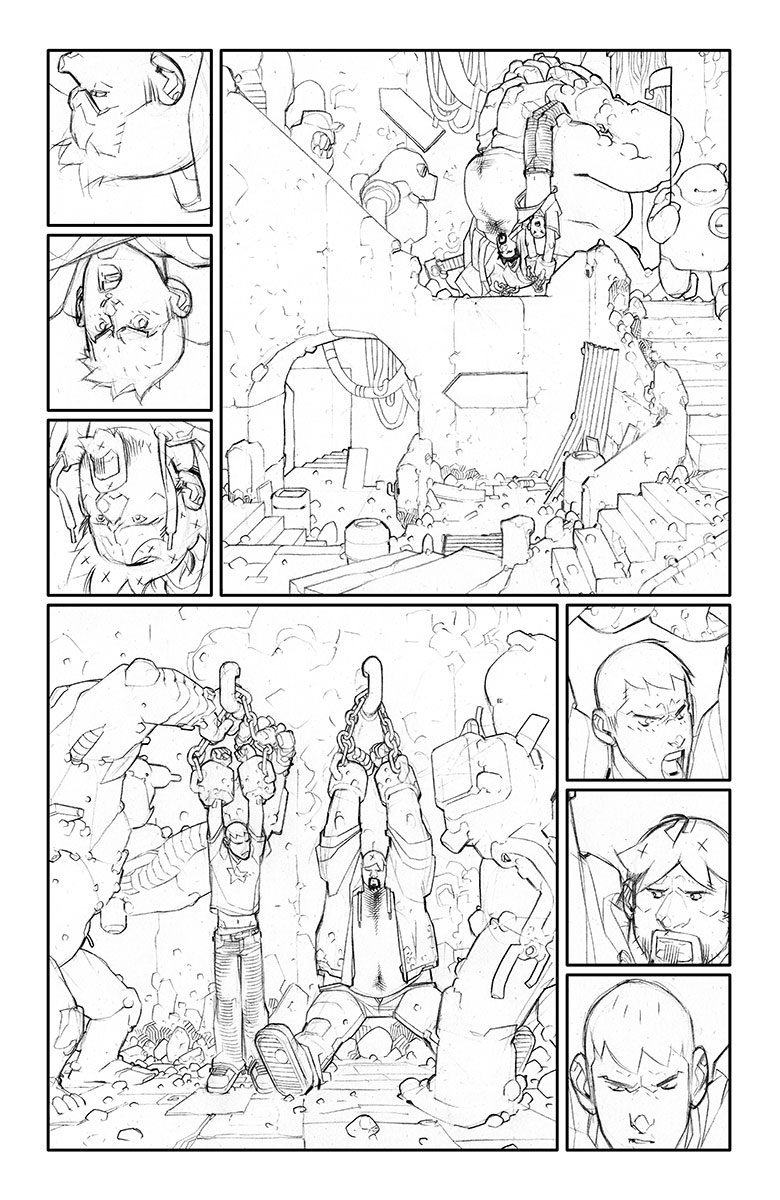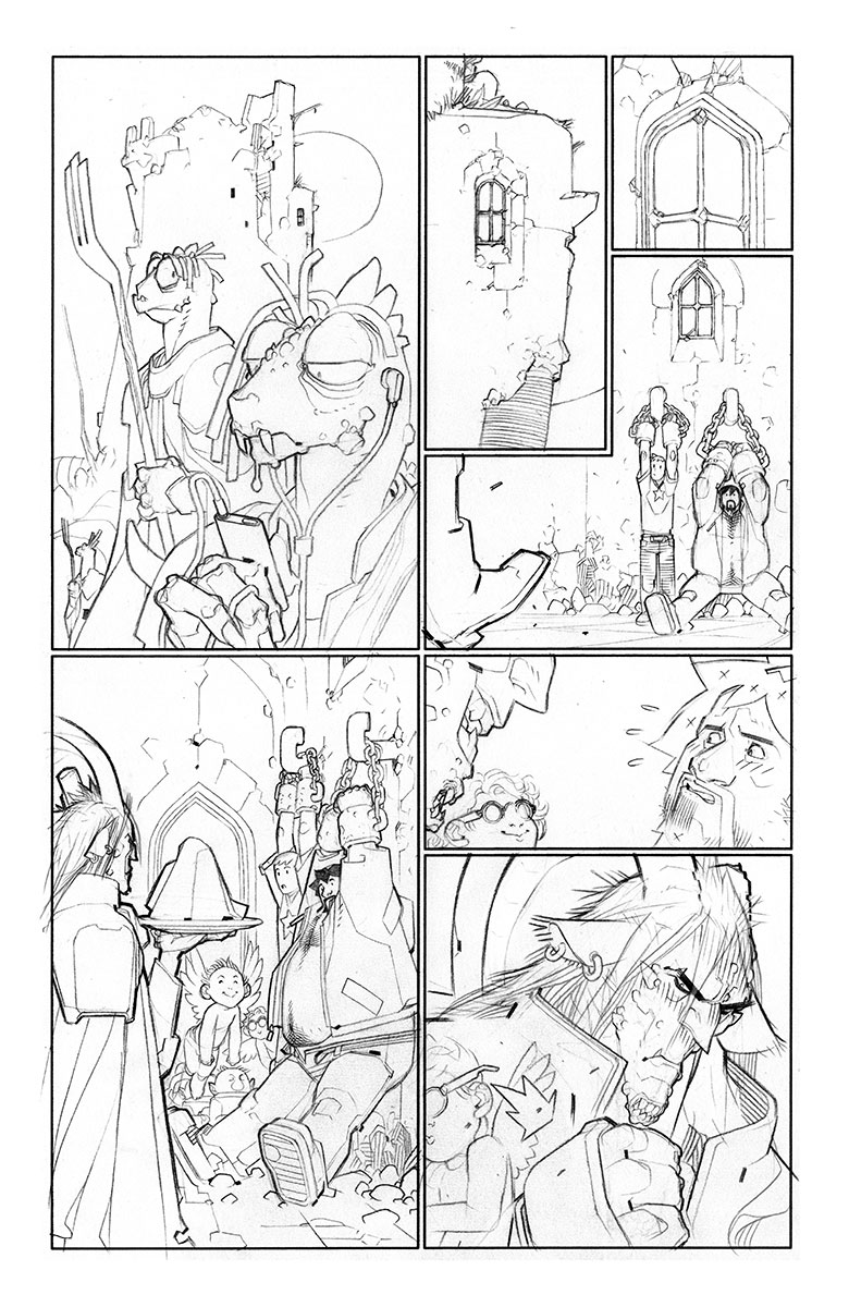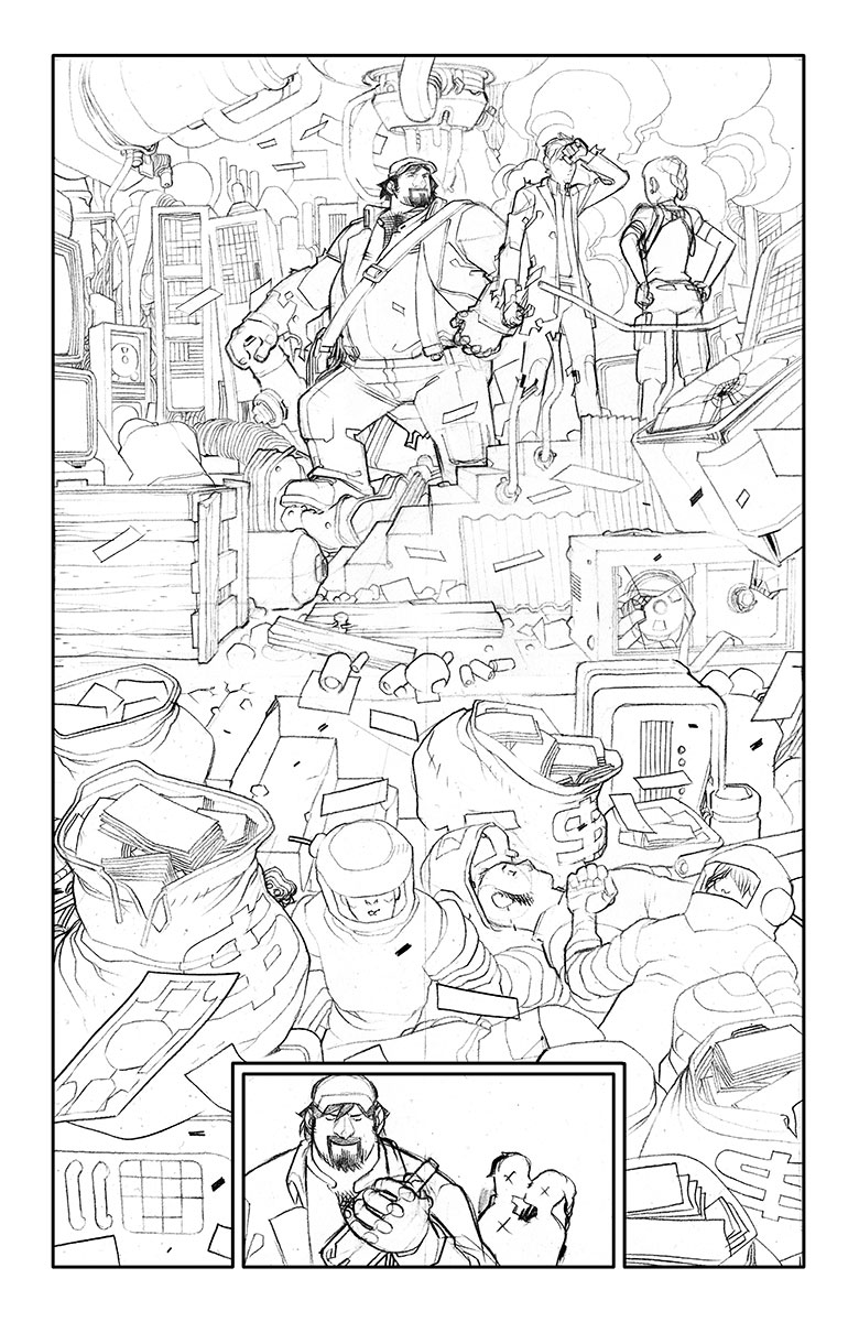 “[A&A: THE ADVENTURES OF ARCHER & ARMSTRONG is] insane and weird and trippy. When David came aboard, not only did he draw all the madness I had written, but he added to it,” writer Rafer Roberts told Multiversity Comics. “There’s a splash page where we see an overview of the world inside the bag that I described as a Home Depot designed by MC Escher and stretching into infinity. He exceeded my expectations by a mile. Every strange creature, whether it be the goblins who keep everything organized inside the bag, or the trash golems made up of thousands of years worth of Armstrong’s garbage, looks amazing and way crazier than I ever imagined.”