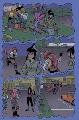 Archie Comics has released an early preview of Betty & Veronica: Vixens #6 and the issue kicks off a new arc “Hunted”. BETTY & VERONICA: VIXENS is an ongoing series by writer Jamie L. Rotante, artist Jen Vaughn, colorist Elaina Unger, and letterer Rachel Deering about the action-packed adventures of B&V in a motorcycle gang!