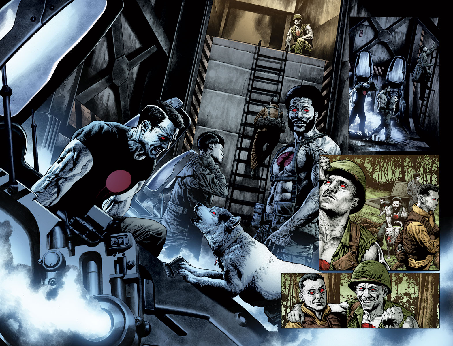 Valiant is proud to present your first look inside BLOODSHOT REBORN #15! On July 13th, it’s sun, surf, and suicide missions when New York Times best-selling writer Jeff Lemire (THE VALIANT, Moon Knight) and Valiant-exclusive superstar-in-the-making Mico Suayan (BLOODSHOT REBORN) plunge headlong into the next shocking chapter of “BLOODSHOT ISLAND“! As the unstoppable killing machine codenamed Deathmate hunts Bloodshot and his fellow castaways from Project Rising Spirit, all hope hinges on surviving the seemingly endless cycle of tortures that this tropical paradise turned killing field has to offer…