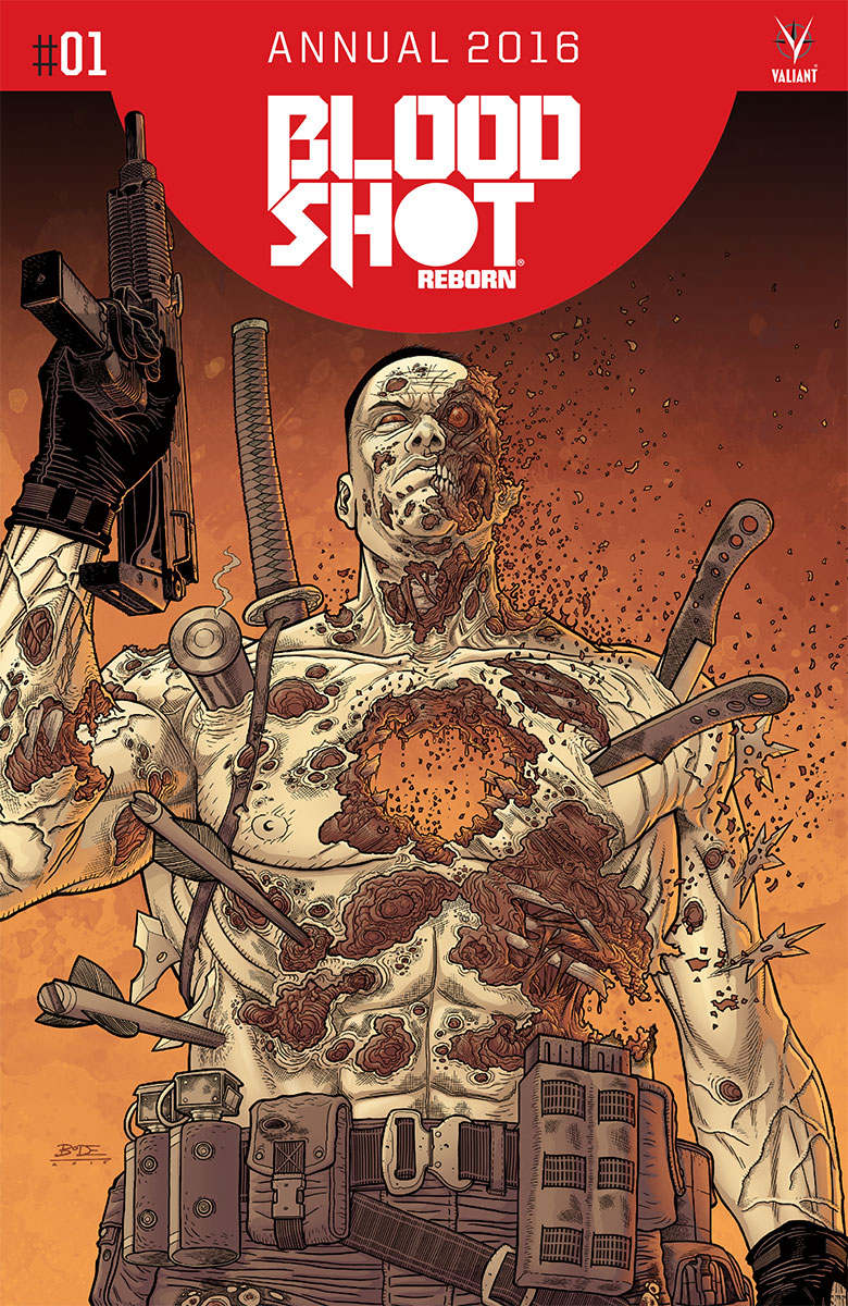 Featuring covers by Kano, Ryan Bodenheim (The Dying & The Dead), Robert Charles Wilson IV (Bitch Planet), and Keron Grant (Fantastic Four), get all this, plus your first look at the next major Bloodshot milestones coming to the Valiant Universe in 2016 and beyond, when the BLOODSHOT REBORN ANNUAL 2016 #1 unloads a 64-page clip of action in stores everywhere on March 23rd!