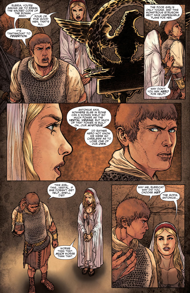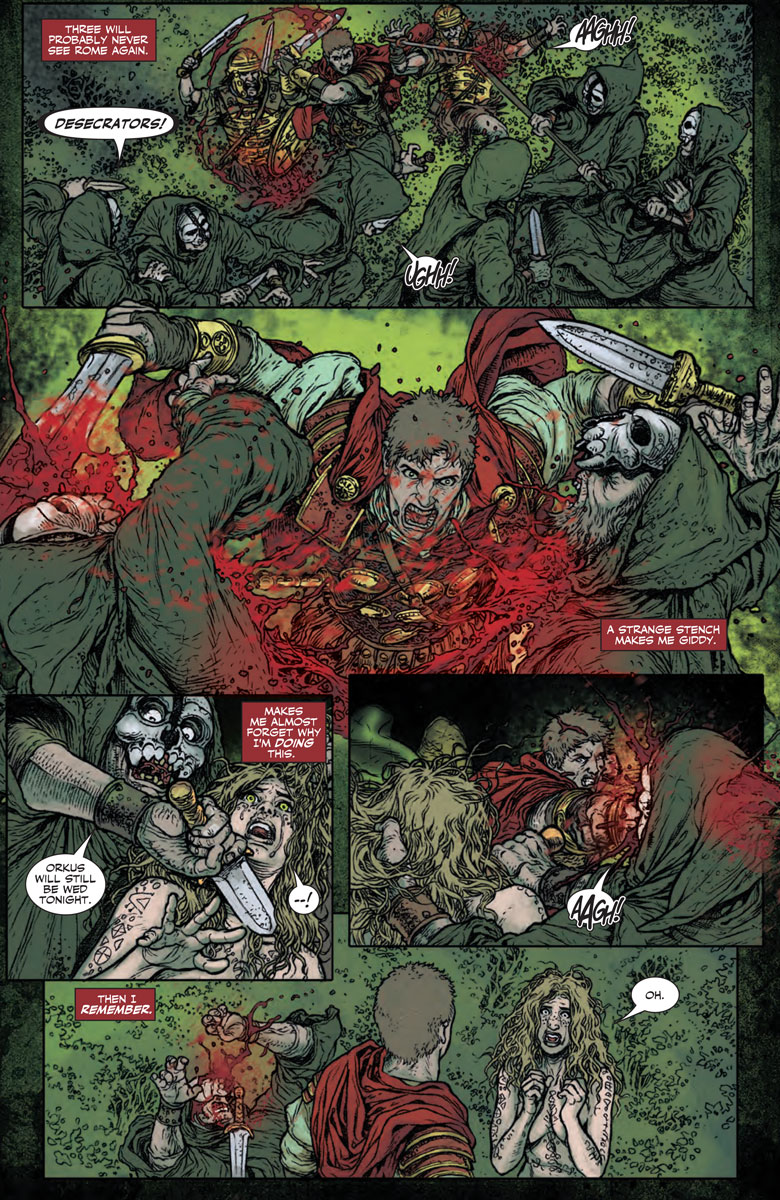 “I see this story as kind of Gladiator meets Druid-era Alien, and that sets the tone. Any story that has Nero and all his excesses, alongside the brutality of Roman Imperial oppression and mashes this with dark magic and horror must have a degree of darkness to it,” writer Peter Milligan told ComicBook.com. “But there’s a lot of humanity in there too… I think this mix of the real and the fabulous, the dark and the amusing, makes it unlike most stories set in the ancient world.”