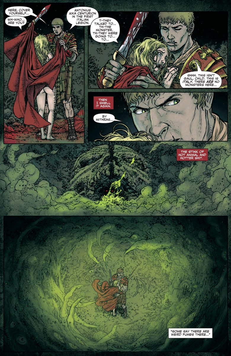 Valiant is proud to present your first fully lettered look inside BRITANNIA #1 – the FIRST ISSUE of the all-new, prestige-format limited series from comics master Peter Milligan (X-Statix, Detective Comics) and incendiary artist Juan Jose Ryp (NINJAK)! On September 21st, “THE FUTURE OF VALIANT” continues here as Antonius Axia, the ancient world’s first detective, takes a psychological journey into terror, temptation, and bloodshed that could destroy not only his humanity, but the very empire he has sworn to uphold…