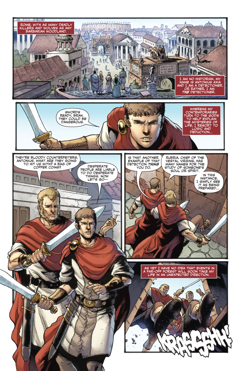 “The story is a nice continuation on the mythos of Antonius Axia that seamlessly builds on the first two series, while presenting a whole new mystery that takes him to a new, unexpected location,” artist Robert Gill said. “There’s an absolute plethora of my favorite things to draw in this series which I hope culminate into one hell of a visual experience for the reader.”
