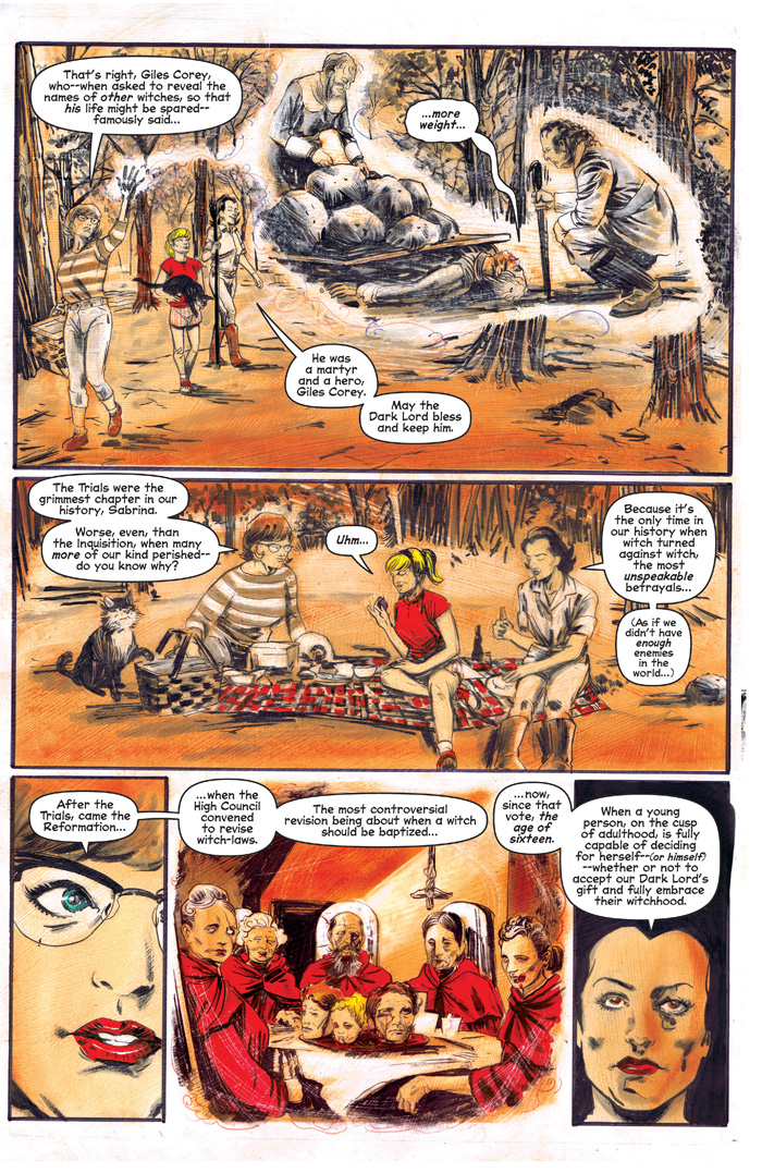 CHILLING ADVENTURES OF SABRINA VOL. 1On the eve of her sixteenth birthday, the young sorceress Sabrina Spellman finds herself at a crossroads, having to choose between an unearthly destiny and her mortal boyfriend, Harvey. But a foe from her family’s past has arrived in Greendale, Madam Satan, and she has her own deadly agenda. Archie Comics’ latest horror sensation starts here! Compiles the first five issues of the ongoing comic book series Chilling Adventures of Sabrina. For TEEN+ readers.