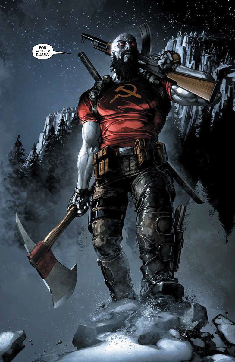 He’s put down protests, led the purge of political undesirables, and executed dozens of traitors to the Soviet super-state. His name is Komandar Bloodshot…and his existence is a hushed whisper among the terrified populace of the 21st century’s global Soviet Union. But just who is this unrelenting enforcer of state superiority… and what is the shocking truth about his power, his allegiances, and his true identity?