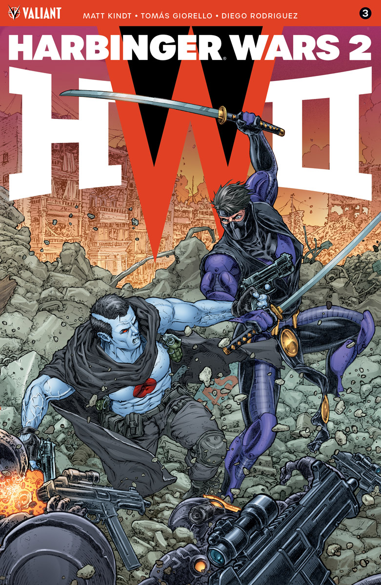 Valiant is proud to reveal your first look at the covers for HARBINGER WARS 2 #3 (of 4), the third chapter in the SEISMIC SIX-PART EVENT that will push Valiant’s most powerful heroes past their breaking points and beyond! On July 25th, New York Times best-seller Matt Kindt (DIVINITY, Mind MGMT) and breathtaking artist Tomás Giorello (NINJA-K) – the creative team who waged war against the galaxy in the best-selling X-O MANOWARseries – advance their new campaign deep into the heart of the Valiant Universe towards an unstoppable, continent-shattering climax!