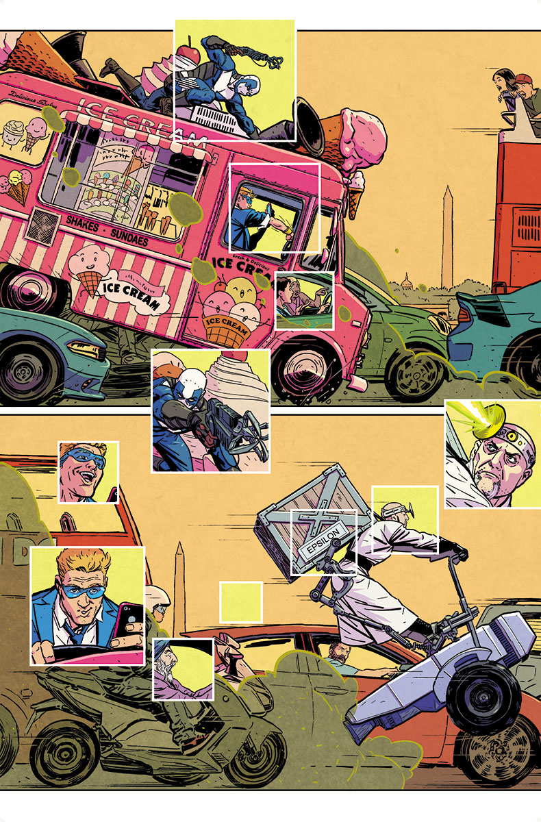 “So, since we’ve seen Quantum and Woody last, they’ve become as estranged as you can be when you’re bound on the molecular level,” writer Daniel Kibblesmith told Entertainment Weekly. “They’re not on speaking terms – Woody shows up every morning, KLANGS, and drives off. But the crazy thing, at least for readers who know the characters, is that the fight that broke up Quantum and Woody was actually Eric’s fault. He knew Woody’s birth father was still alive, and kept it from him. So, we’re all going to find out why, and the consequences of that brotherly betrayal.”