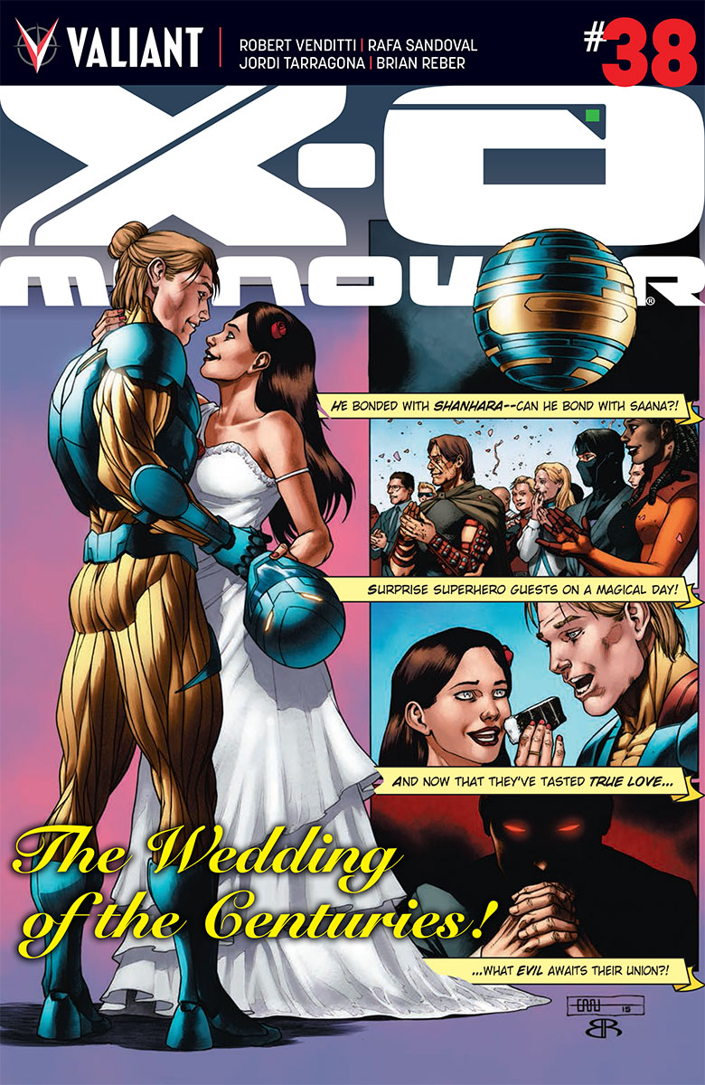 Valiant is proud to present the first look inside X-O MANOWAR #38 – an oversized, 48-page wedding spectacular from New York Times best-selling writer Robert Venditti (BOOK OF DEATH, Green Lantern), red-hot artist Rafa Sandoval (Ultimate Hawkeye) and an all-star cast of special guests from across the Valiant Universe! On July 1st, witness the summer’s most joyous celebration as Aric of Dacia – aka the unstoppable X-O Manowar – and his bride-to-be, Saana of Loam, begin a joyous new chapter for Valiant’s alien-armored powerhouse!
