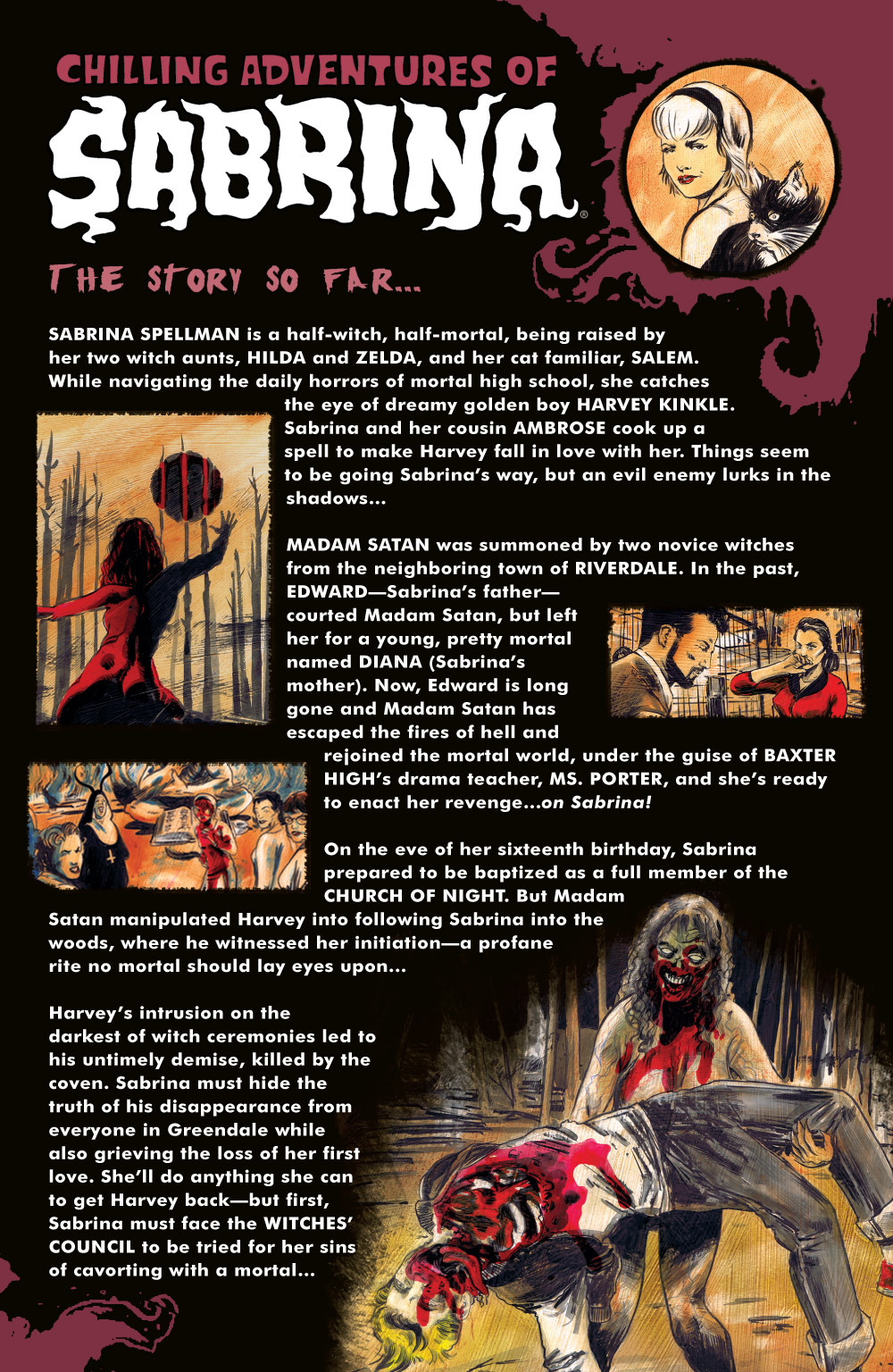 CHILLING ADVENTURES OF SABRINA #5Sabrina has to face the Witches Council for an accusation of conspiring with a mortal against the Church of Night. It will take a series of unnatural tests to prove her innocence, but none of it will bring her beloved Harvey back. She’ll have to take matters into her own hands to find Harvey’s missing soul. Recruiting two other young witches (from a neighboring coven), Sabrina holds a séance, but as ever, Madame Satan is pulling the strings behind the scenes, and what Sabrina taps into is much more dangerous—and diabolical. And will send our beloved teen witch on an epic quest. For TEEN+ readers.