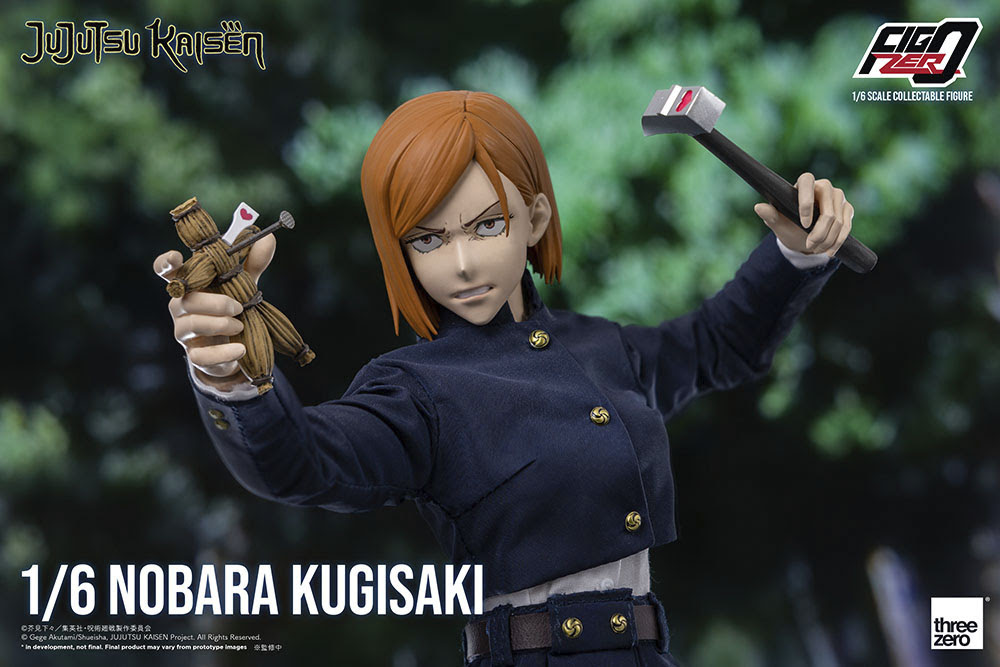 The Nobara Kugisaki 1/6 Scale Figure by Threezero is inspired by the character’s appearance in the popular anime series Jujutsu Kaisen. The figure features a detailed headsculpt with three interchangeable faceplates and two interchangeable hair pieces. Highly poseable with 32 points of articulation, the Nobara Kugisaki 1/6 Scale Figurealso comes with a beautifully tailored fabric outfit which includes a shirt, stockings, and a Jujutsu High jacket and skirt. Additional accessories include a bag and jujutsu effects, as well as a hammer, nails, and a straw doll for her signature move.