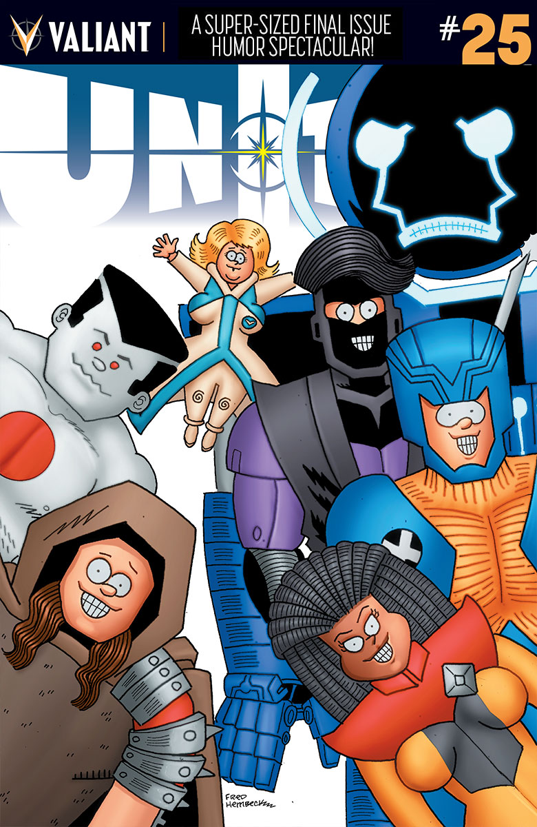 Featuring a truly warped series of shelf covers by Valiant superstar Kano (THE DELINQUENTS), Matt Kindt (Mind MGMT), Fred Hembeck (Marvel Age), and Michael Kupperman (Tales Designed to Thrizzle), the greatest champions of the Valiant Universe are about to go head-to-head with a bleachers-busting line-up of pop culture’s premiere comedy “minds” (ahem) right here, only in UNITY #25 – in stores December 9th!
