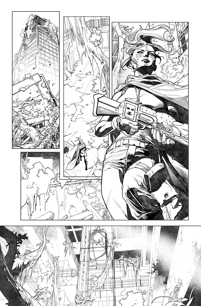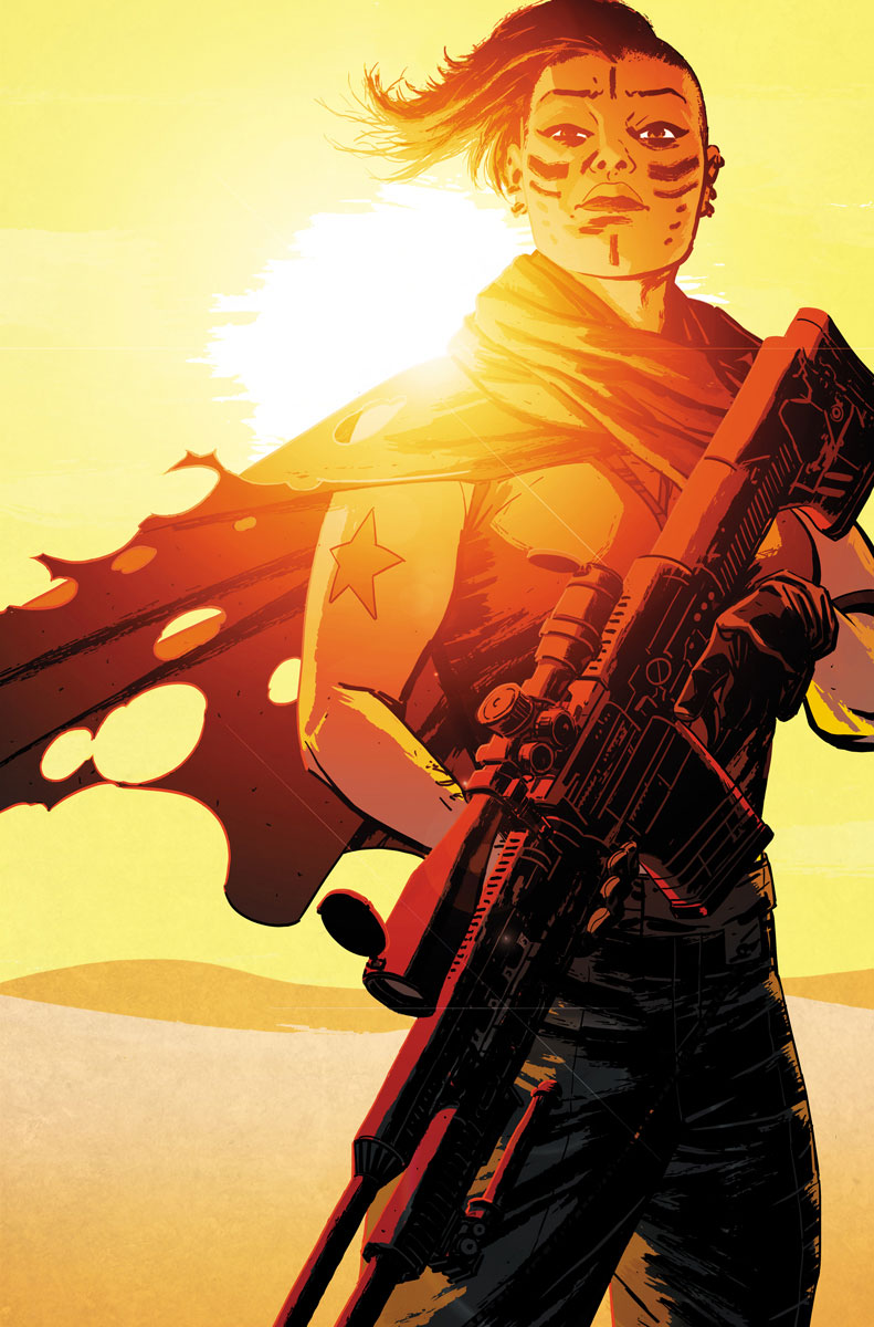 “Ana lives in Earth’s far future, in 4001 A.D., long after the collapse of civilization as we know it,” writer Fred Van Lente told Multiversity Comics. “Her home is a patch of mutated Amazon jungle roughly where the border of Colombia and Brazil once was. She is the primary protector of her tribe, and bears the title War Mother, because she has been symbiotically linked to her own weapon, a sentient sniper rifle nicknamed Flaco. And she has a lot to protect them from — cannibal mutants, cyborg monsters, and weird plots from the technologically advanced remnants of the old world!”