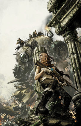 Two millennia from today, Earth is not the hospitable home we once we knew. Ravaged by an endless onslaught of war, disaster, and time, the world is littered with desolate badlands, fortified kingdoms, and secretive enclaves where humanity still clings to life… Enclaves like The Grove – Earth’s last known repository of scientific knowledge and bioengineered prosperity. Now, under the leadership of the lone protector called War Mother and her sentient sniper rifle, the denizens of The Grove face a critical choice: remain where they are and die, or find a new land and flourish. Can War Mother lead her people out of isolation and reignite the fires of a dying planet? And even if she can locate the distant citadel she seeks, can she fight back the horrors and perverse monstrosities that lurk just beyond her doorstep?