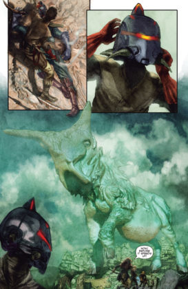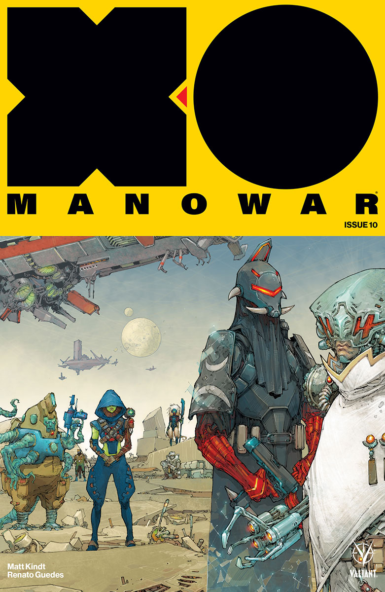 As first revealed at Comics Bulletin, Valiant is proud to present your first lettered look inside X-O MANOWAR (2017) #10 – an ESSENTIAL JUMPING-ON POINT featuring the first appearance of the most feared band of trackers the Valiant Universe has ever known! On December 27th, New York Times best-selling writer Matt Kindt (ETERNITY, Mind MGMT) and blockbuster artist Renato Guedes (Wolverine) begin the march toward “VISIGOTH” – the next chapter in X-O Manowar’s critically acclaimed conquest – with an essential, standalone introduction to a cold and cunning band of interplanetary bounty hunters racing toward a singular goal: kill Aric of Dacia..or die trying…