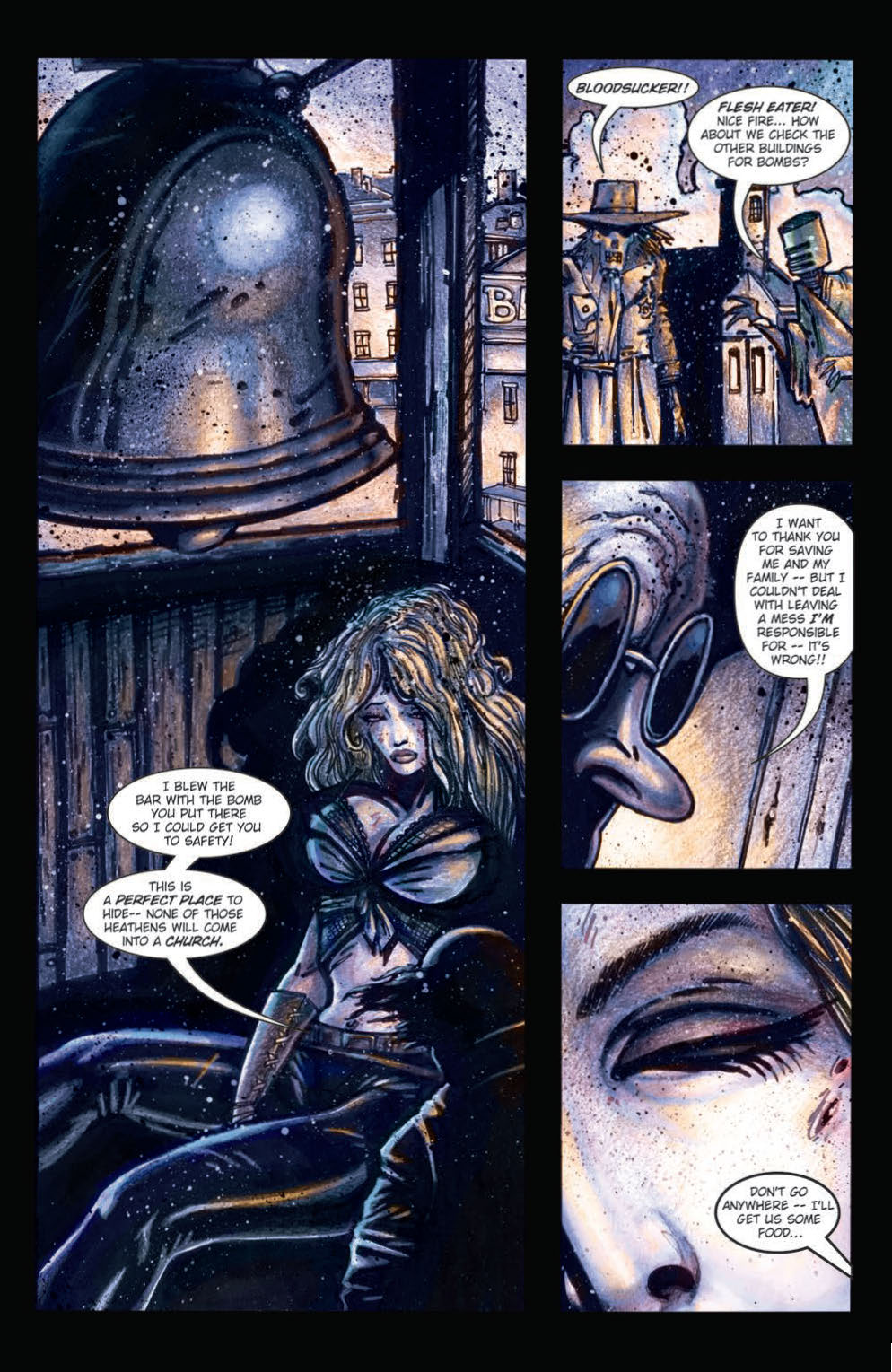 Just as Blondie loses all hope in her battle with the Zombies and Vampires, a gang Ducati riding, black leather, Mac 10 toting thugs roll into town, seeking refuge after a bank heist – the whole town explodes in a battle for the last man, or woman, standing – in a climax you don’t want to miss.