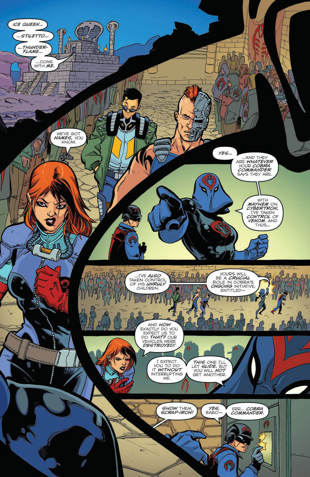 As Scarlett heads off to Cybertron to confront the events of First Strike, her G.I. Joe team on Earth faces an unusual enemy… V.E.N.O.M.! With the help of a former M.A.S.K. member, G.I. Joe looks to put an end to Miles Mayhem’s sinister group once and for all, in the Greatest Crossover One-Shot Of All Time!