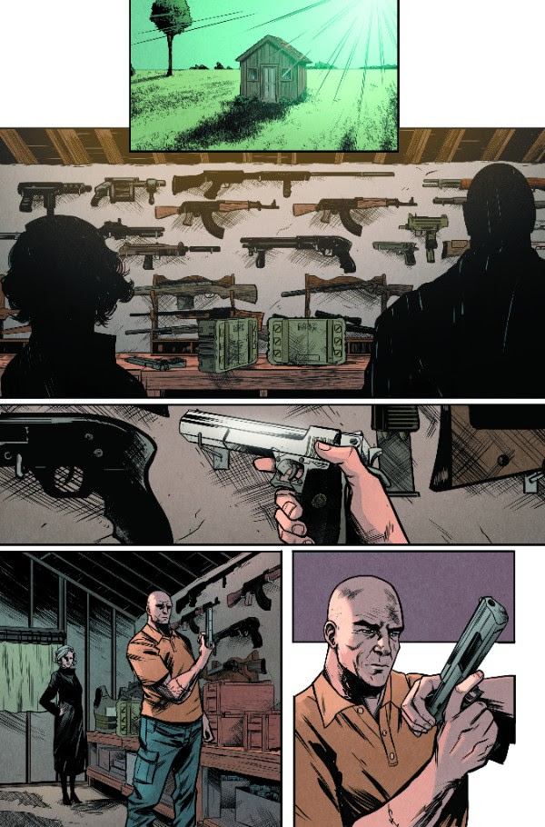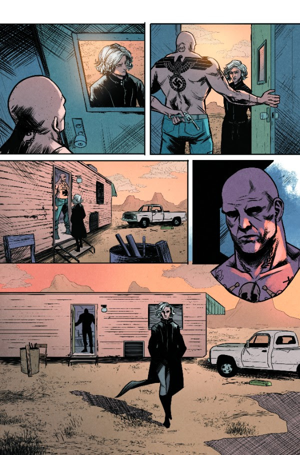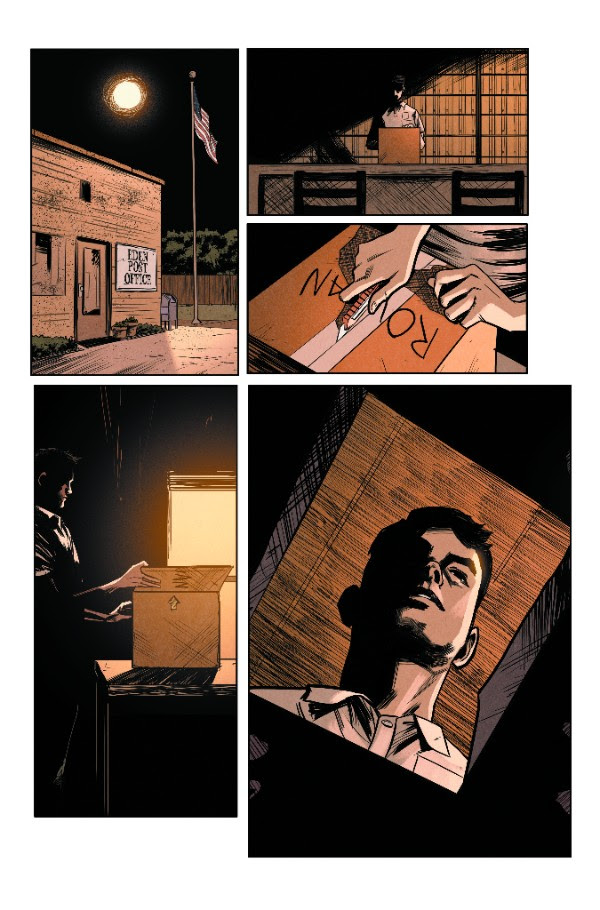 “With POSTAL, Matt Hawkins has allowed me to explore the darkest aspects of human nature with an unflinching view of the equally violent and righteous world of Eden, Wyoming and its town filled with criminals,” said Hill. “In this arc, the stakes are even higher for Eden, and for the first time in the series, Mayor Laura Shiffron, and her postman son Mark, find themselves targeted by people who are even more dangerous than they are. Isaac Goodhart is firing on all cylinders and new colorist K. Michael Russell has brought a brutally beautiful perspective to the word of POSTAL.”