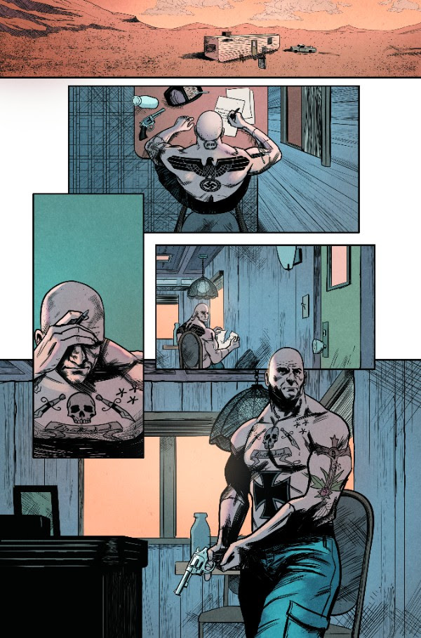In POSTAL #13, the FBI tightens its noose around Eden. Mark and his mother Laura must either choose to let one of their own suffer at the hands of revenge, or help him take a stand against his enemies—the Aryan Brotherhood. Does everyone deserve redemption, or are there some deeds that can’t be forgiven?