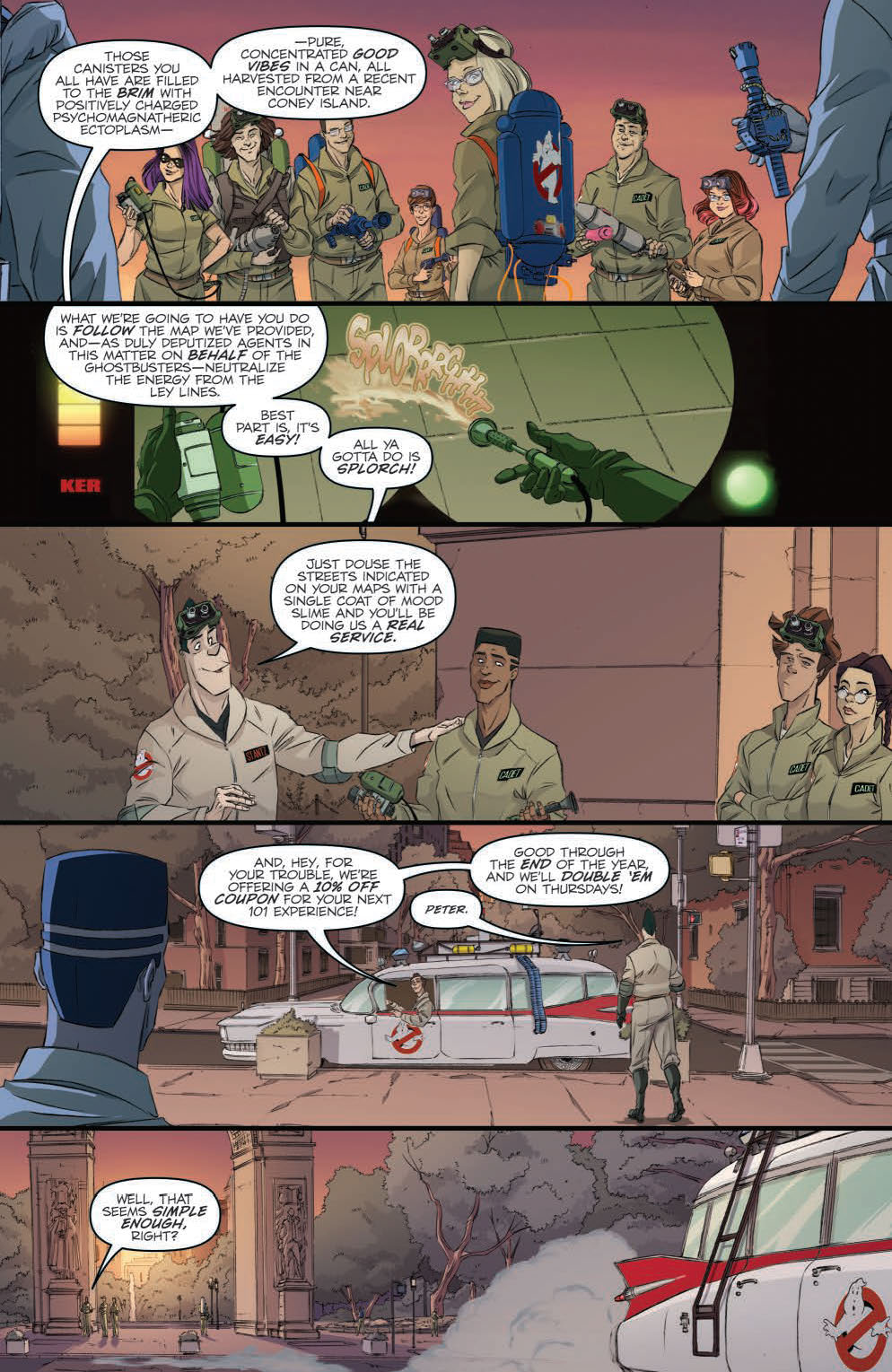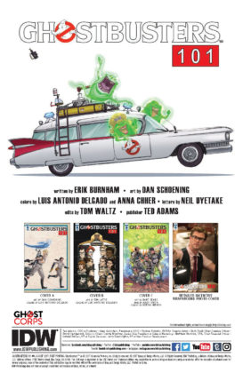 Thanks to a timely intervention, the Ghostbusters have saved the day! But you knew that would happen—you’re an old hand at this kind of thing! But after all the goodbyes are said and the players are all back to where they belong, one question remains: did the Ghostbusters’ ultimate solution have any consequences for the multiverse?! Find out in the finale to GHOSTBUSTERS 101!
