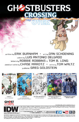 For a while now, the original Ghostbusters have had access to an interdimensional portal that has given them all-new ways to research the paranormal and consult with Ghostbusters throughout the multiverse… but they haven’t shared this tech with any of those other Ghostbusters, and some don’t think that’s fair. That’s why, after a chance meeting, Jillian Holtzmann and Ron Alexander have decided to right this wrong and cobble together their own working portal… which unintentionally unleashes the contents of the Ghostbusters’ Containment Unit! That’s a lot of ghosts, and it’s going to take a lot of Ghostbusters to recapture them. In fact, it’s going to take ALL of them. Crossing Over starts here!