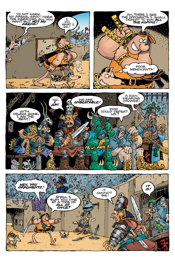 The mutton-skulled swordsman Groo runs into friends (who want to kill him a little) and foes (who want to kill him a lot). He’ll meet up with the sneaky Pal and Drumm, the sneakier Taranto, and the melodic Minstrel . . . but can he help Kayli reunite with her long-lost father? Collects issues #9–#12 of the year long series from Sergio Aragonés, Mark Evanier, and Tom Luth.