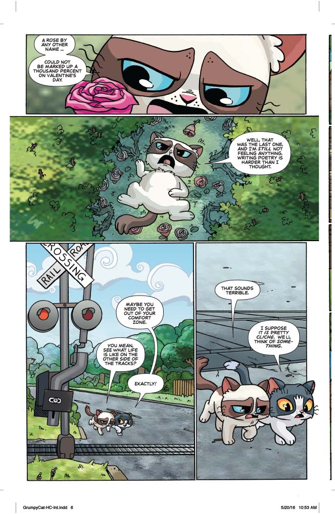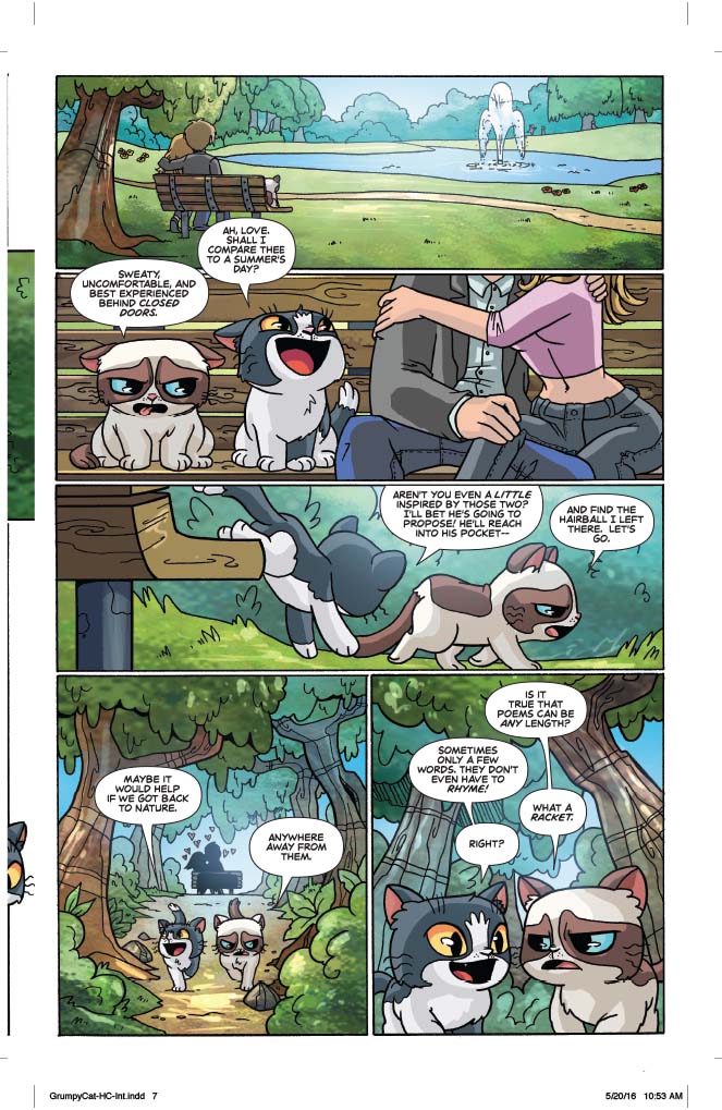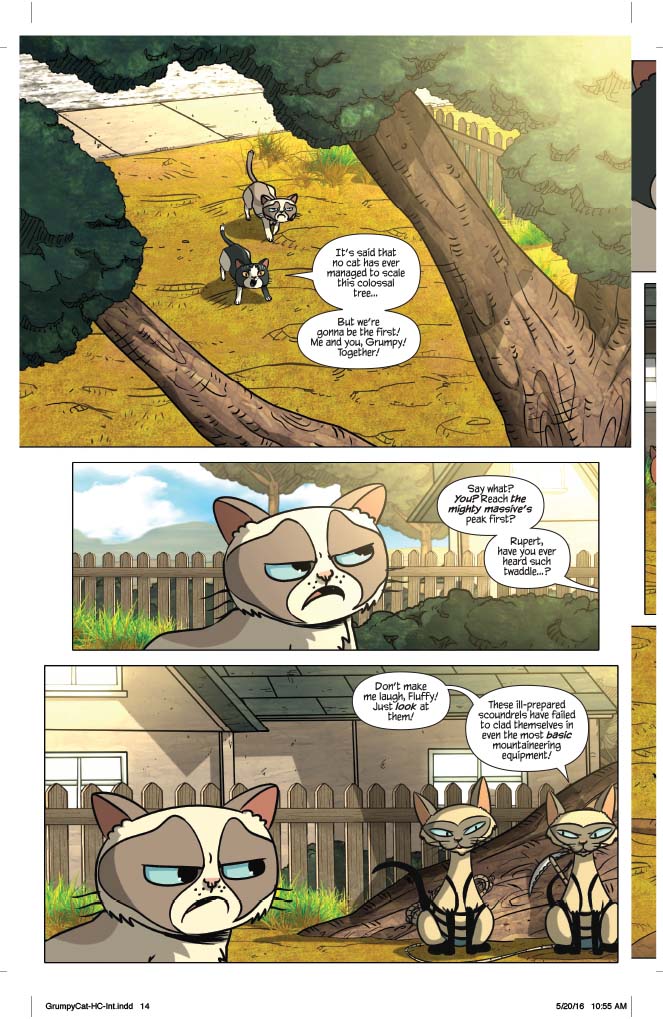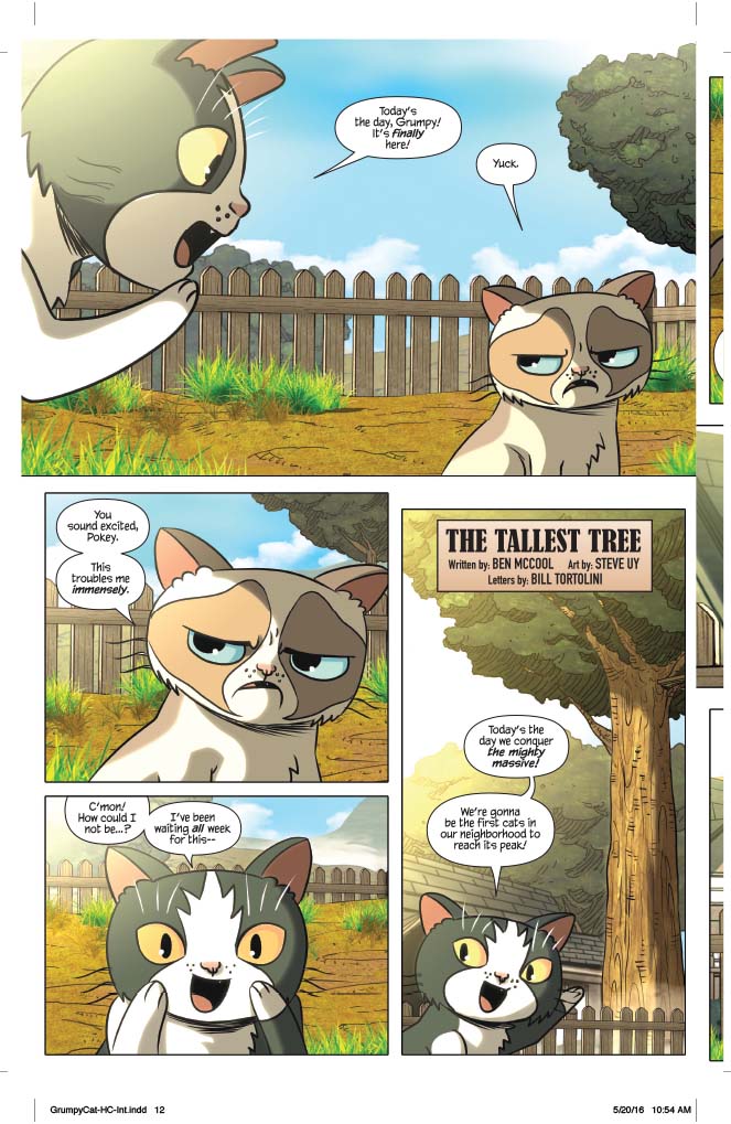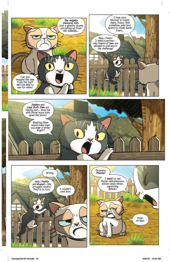 Grumpy Cat, the internet’s cutest curmudgeon, takes the world by storm with her comic book misadventures! You’ll laugh yourself silly at the killjoy kitten’s hilarious brand of sass, most often directed at her fun-loving, big-hearted brother Pokey. They’re two cats that are too adorable for words, one with a childlike wonder, and the other with a pout so prominent, you can’t help but to exclaim, “Awwwwww…!” What fun-loving escapades will Pokey dream up, and how will that adorable scamp Grumpy Cat rain on everyone’s parade?