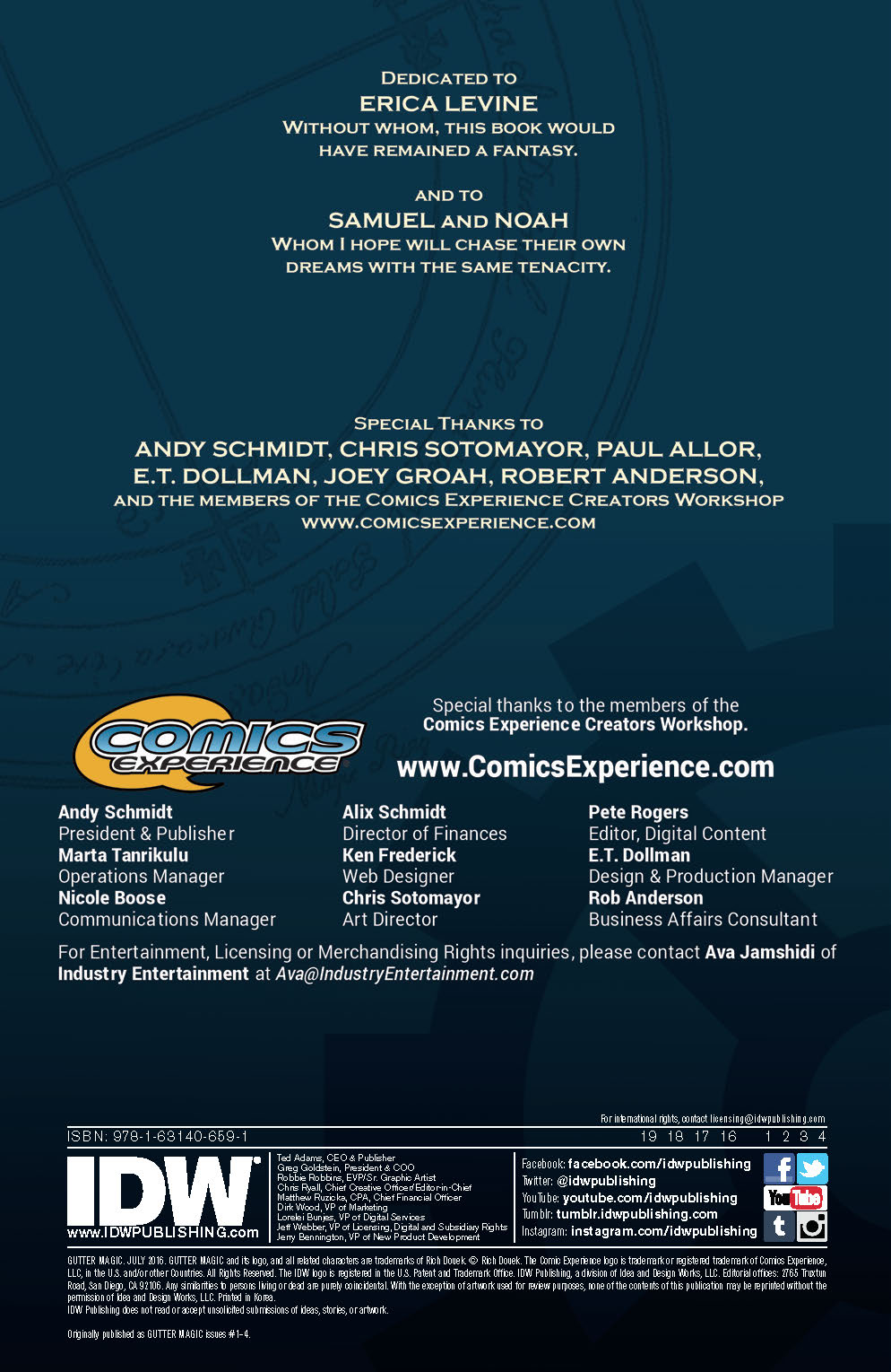 - “Gutter Magic is ferociously entertaining. The creative team on all accounts have done something marvelous in building this world and birthing its characters.” –Fanboys Inc.