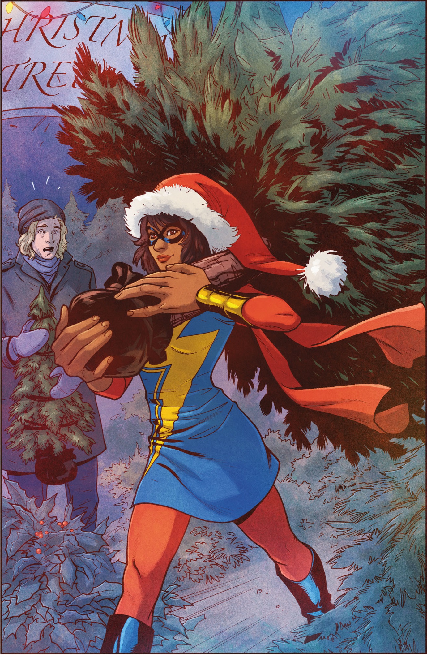 But that’s not all! Several of those partygoers have their own separate stories of holiday cheer – and you can read about them in this can’t-miss special! Gerry Duggan (Deadpool) and Danlio Beyruth (Howard the Duck Gwenpool back-ups) bring you a tale of two Hawkeyes and the one and only Deadpool as they team up to stop a holiday pickpocket – and try not to kill each other in the process. Then, New York Times Bestselling Black Widow: Forever Red scribe Margaret Stohl teams up artist Juan Gedeon (Ghost Racers) as Kamala Khan battles her most dangerous foe yet – the holiday blues! Finally, the woman of the hour make her appearance as writer Christopher Hastings (Howard the Duck Gwenpool back-ups) and Gurihiru (Secret Wars: Secret Love) bring you a new Gwenpool story! Can she adjust to her new home in the Marvel Universe without killing everyone in it?